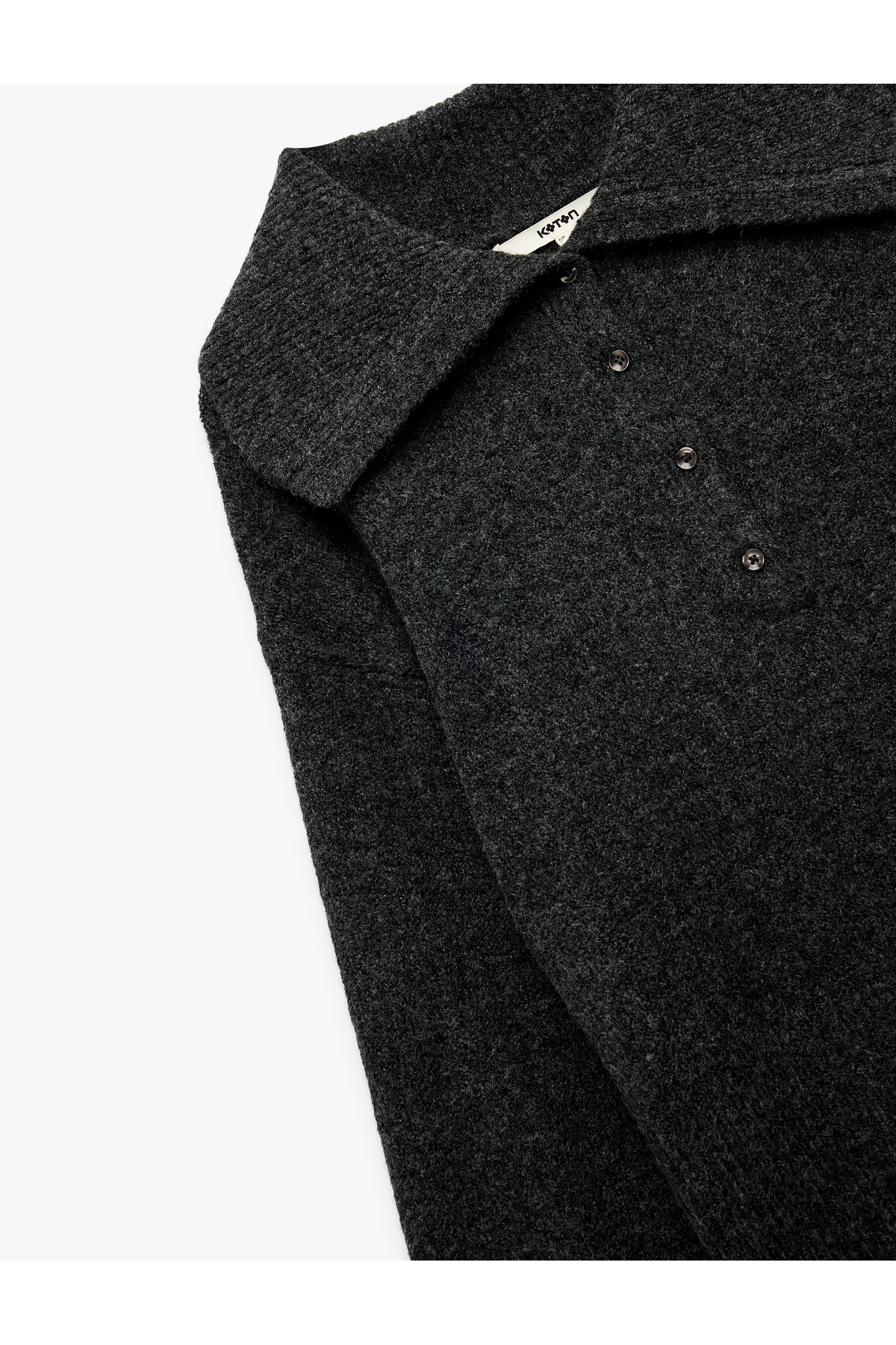 Regular Fit Uzun Kollu Yarım Düğme Detaylı Geniş Polo Yaka Triko Kazak Regular Fit Uzun Kollu Yarım Düğme Detaylı Geniş Polo Yaka Triko Kazak 6WAK90104HT XL