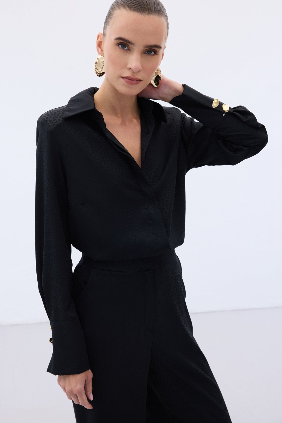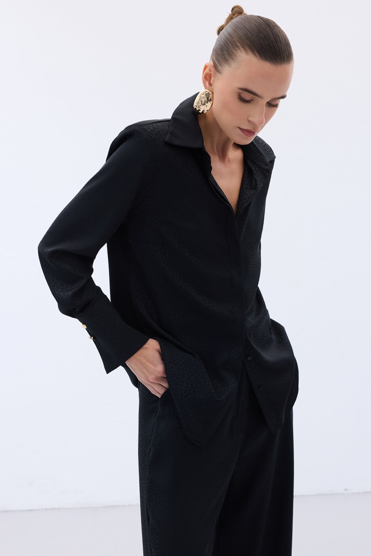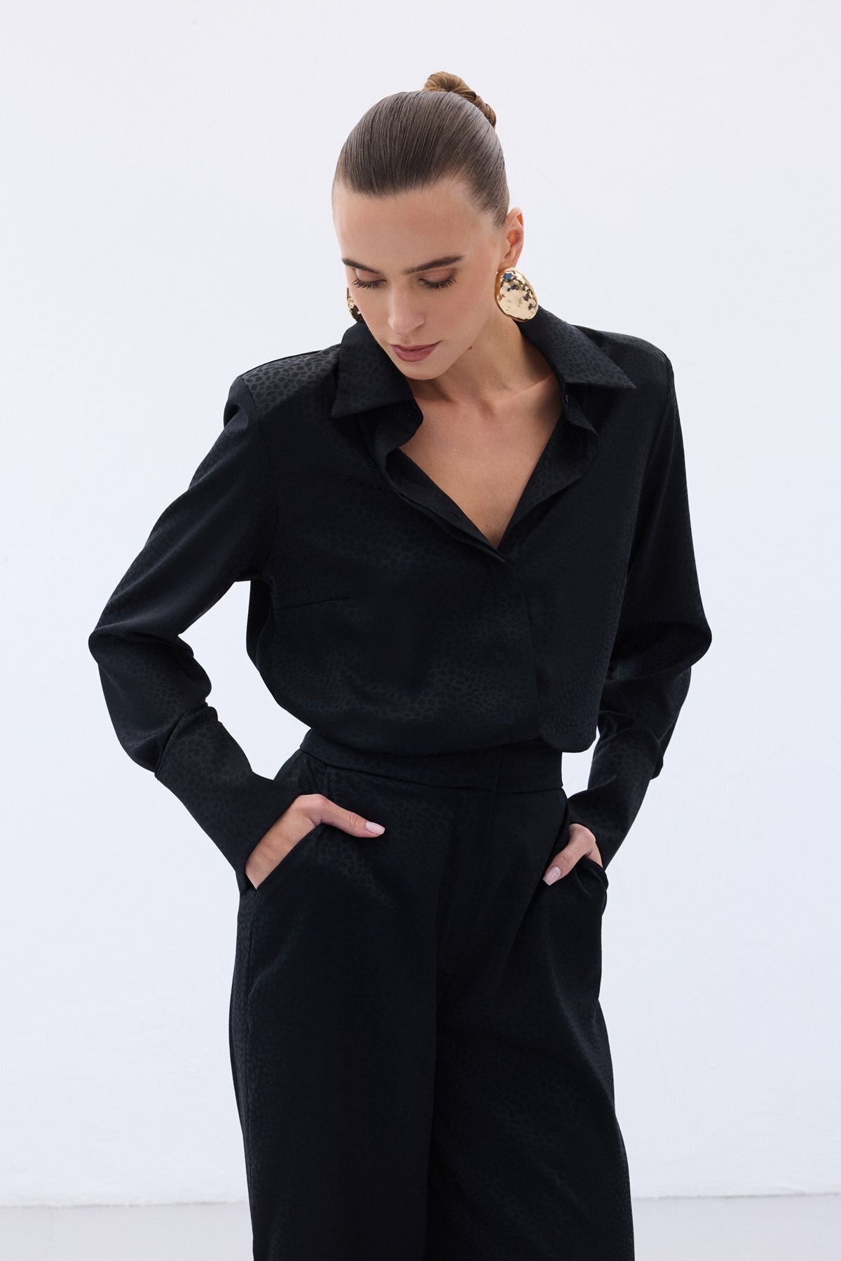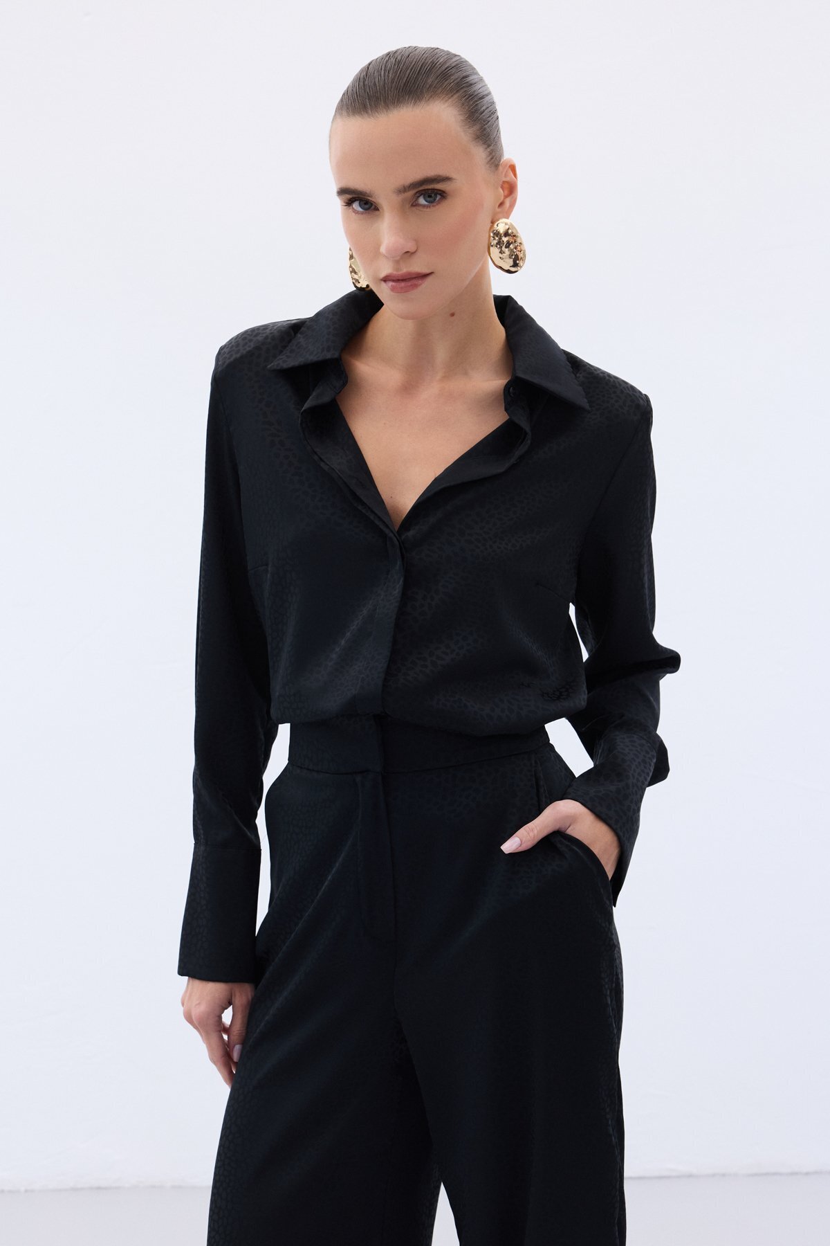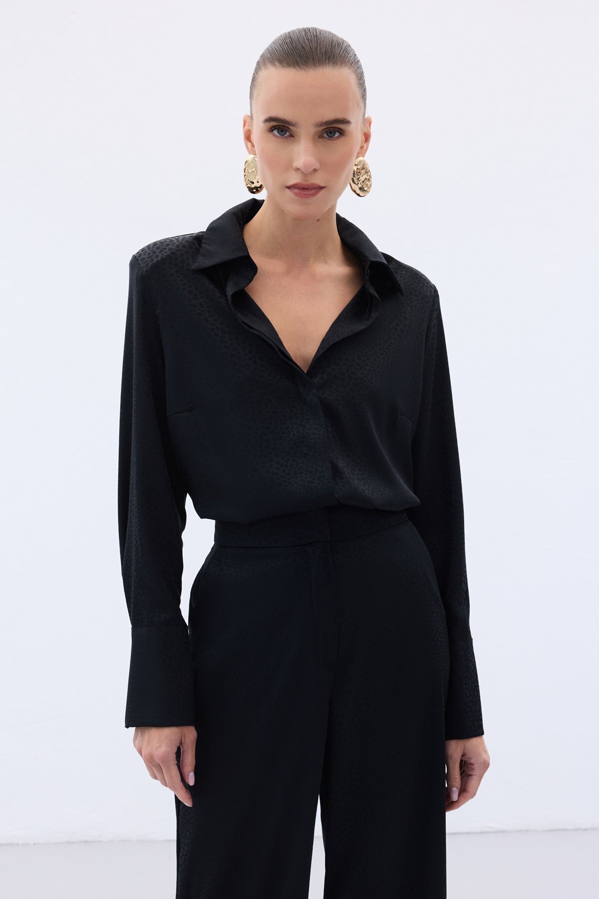 Jakarlı Düz Gömlek - Siyah Jakarlı Düz Gömlek - Siyah STN139KGO1905 42