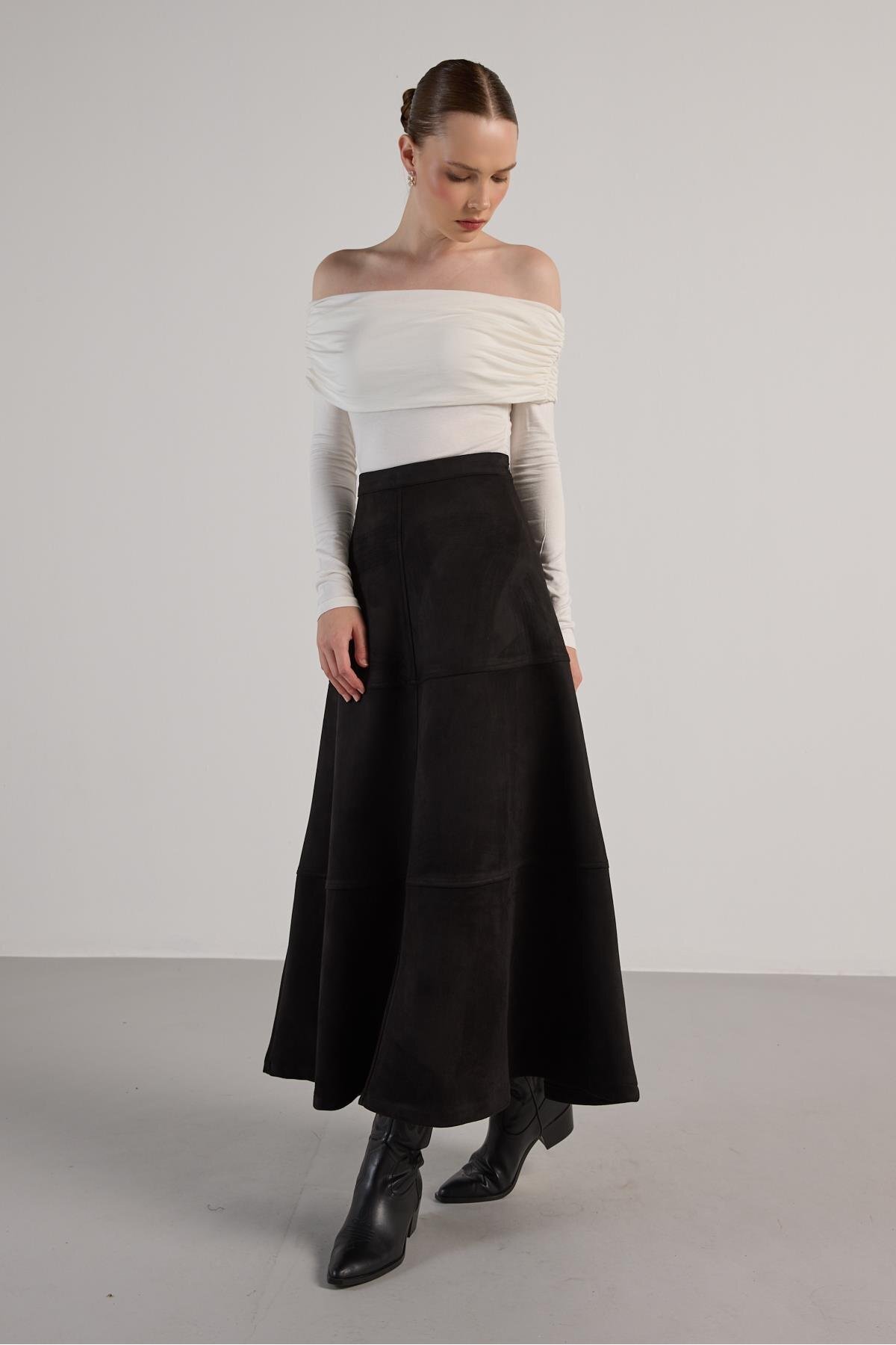 Kadın Siyah Parçalı Dikiş Detaylı Premium Uzun Etek 30054 Kadın Siyah Parçalı Dikiş Detaylı Premium Uzun Etek 30054 L