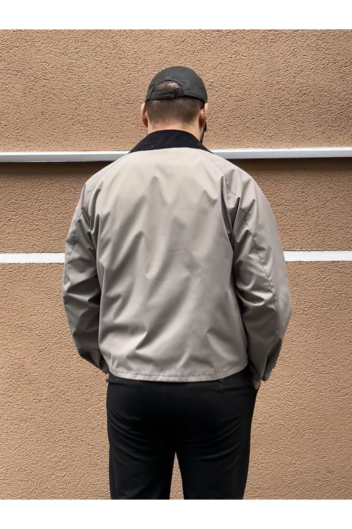 Erkek Bej Kontrast Yakalı Oversize Ceket Erkek Bej Kontrast Yakalı Oversize Ceket kontrastc 2XL