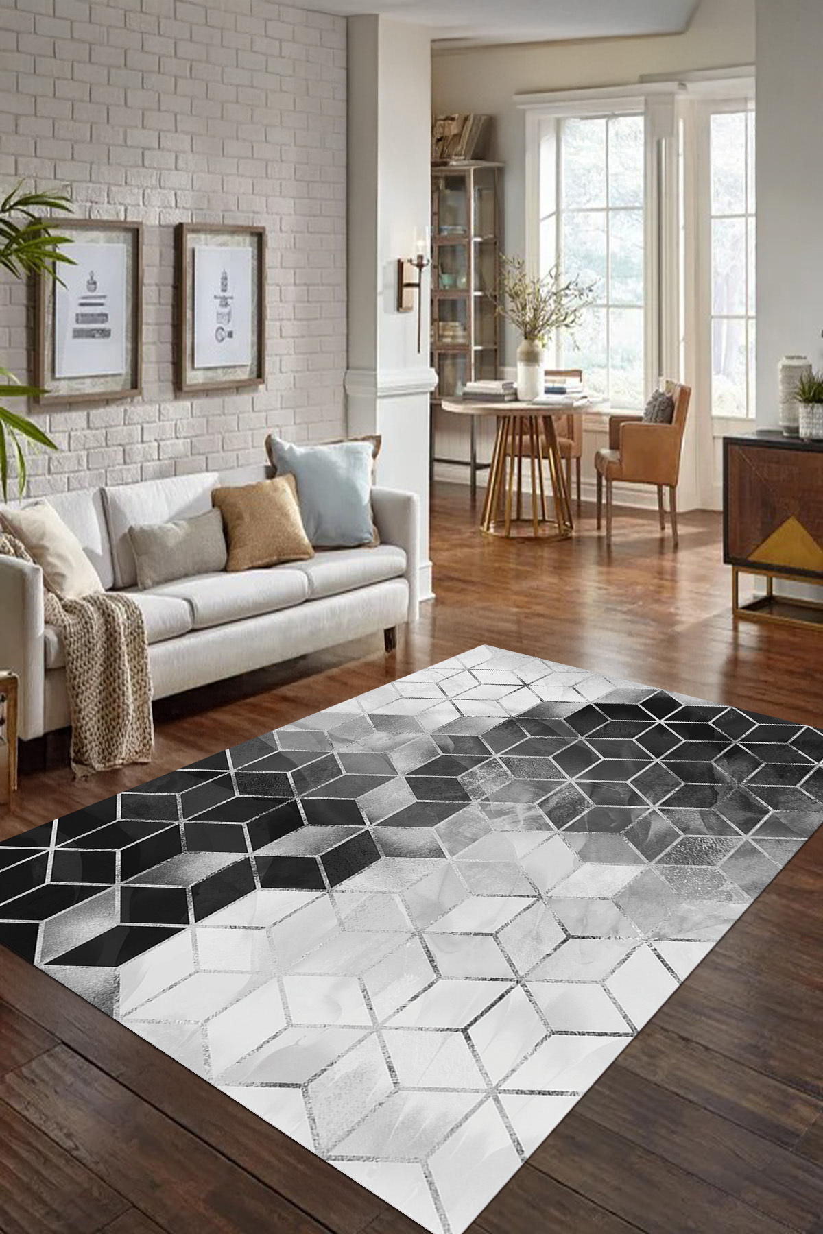 Dijital Baskılı Yıkanabilir ve Kaymaz Tabanlı Küp Desenli Mermer Yolluk Salon Halısı Dijital Baskılı Yıkanabilir ve Kaymaz Tabanlı Küp Desenli Mermer Yolluk Salon Halısı B MERMER 19 160 x 230