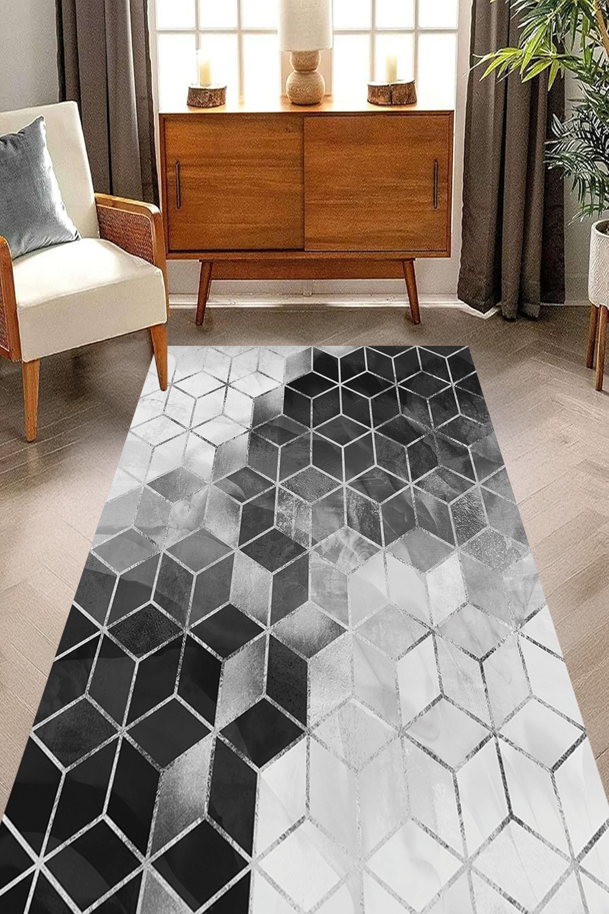 مشخصات فنی Dijital Baskılı Yıkanabilir ve Kaymaz Tabanlı Küp Desenli Mermer Yolluk Salon Halısı