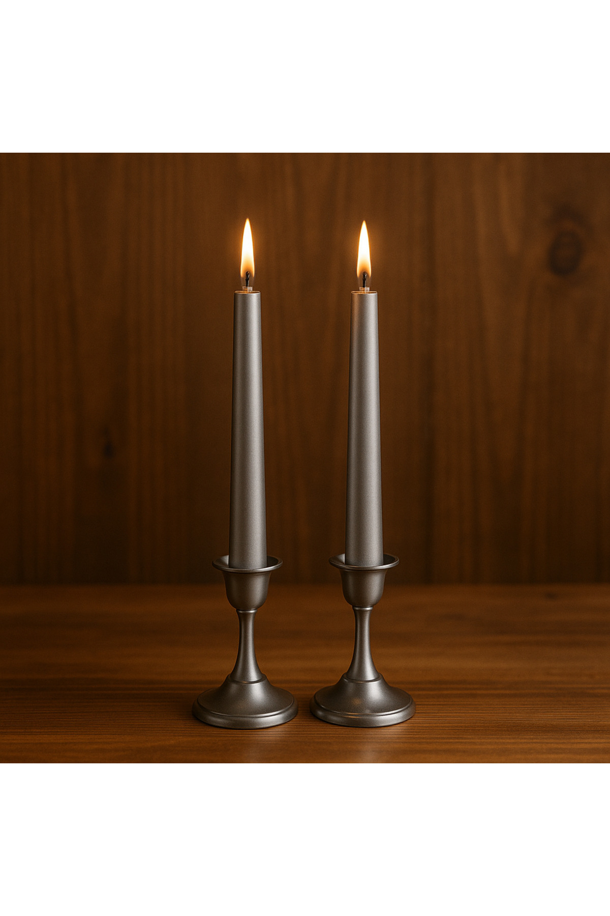 Premium Seri Kokulu Gümüş Rengi Sedefli Konik Şamdan Mum - 2'li Set Premium Seri Kokulu Gümüş Rengi Sedefli Konik Şamdan Mum - 2'li Set gold12345 تک سایز