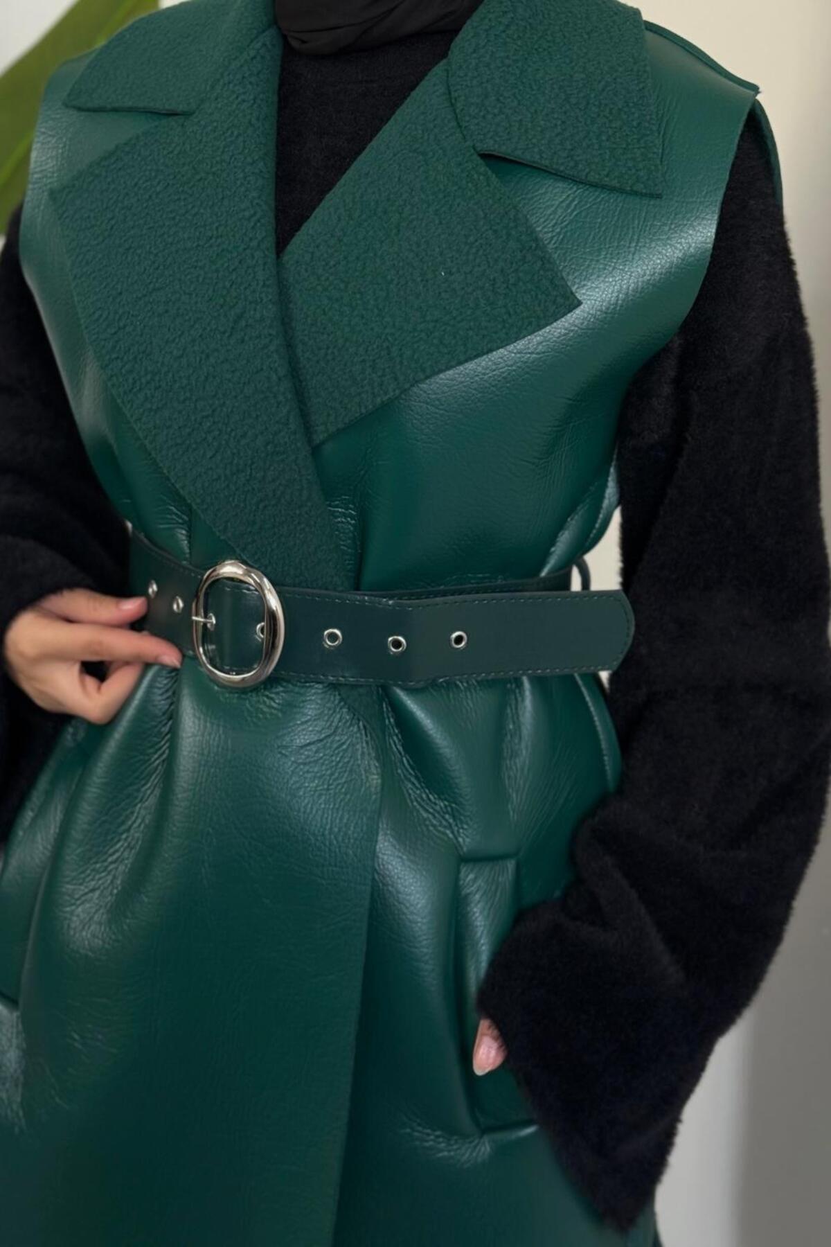Amarila Deri Görünümlü Yelek Yeşil Amarila Deri Görünümlü Yelek Yeşil 6237 تک سایز