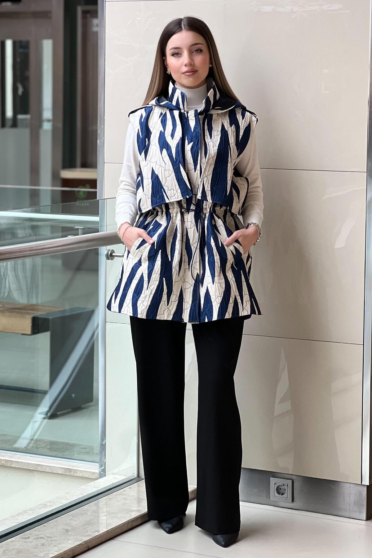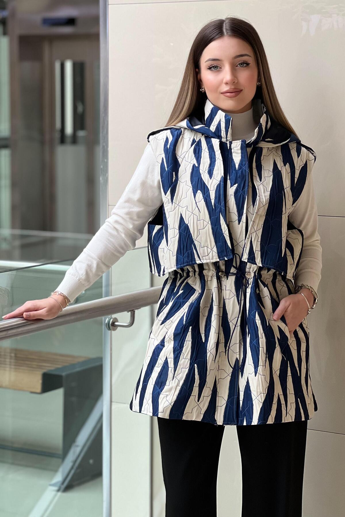 Kapüşonlu Zebra Desenli Yelek Kapüşonlu Zebra Desenli Yelek 26KGSYLK3236 2