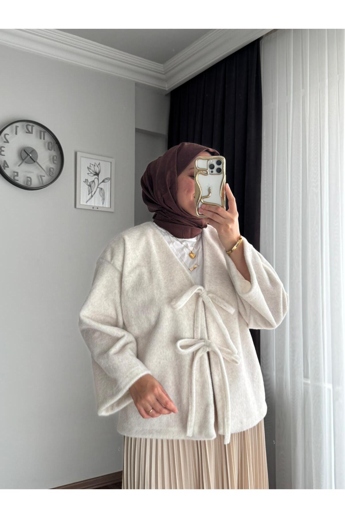 Kadın Etek Üstü Önden Bağlamalı Fox Kimono - Beyaz Kadın Etek Üstü Önden Bağlamalı Fox Kimono - Beyaz R25109 XL