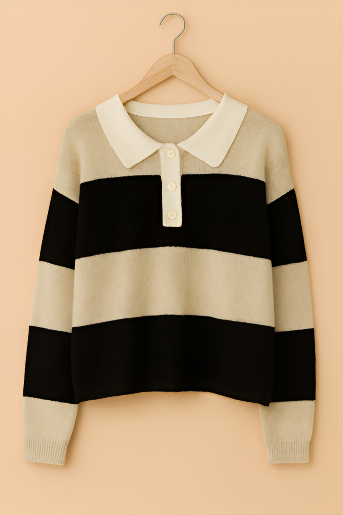 Kadın Polo Yaka Düğmeli Bloklu Triko Kazak Bej Kadın Polo Yaka Düğmeli Bloklu Triko Kazak Bej KÖ-K-068-20 2XL