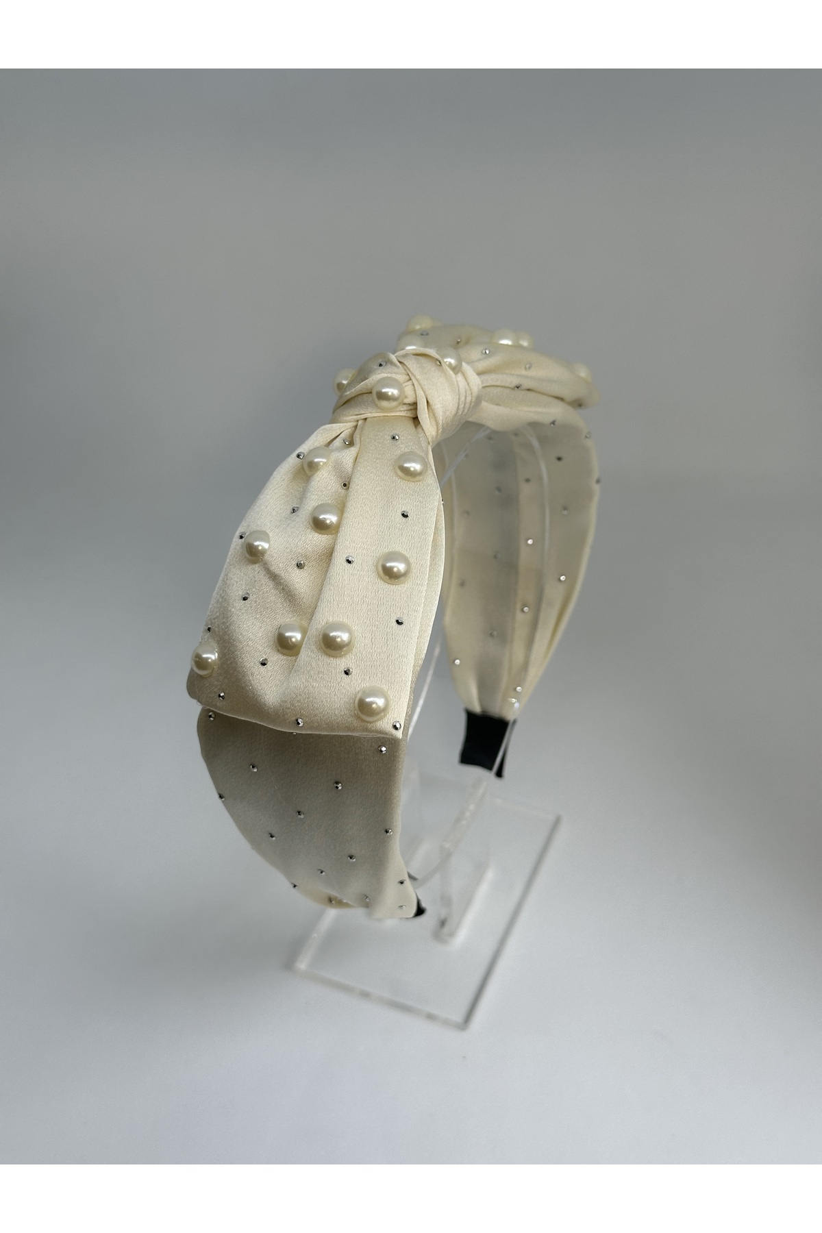 Fiyonklu saten ekru inci süslemeli saten taç, şık saç aksesuarları Fiyonklu saten ekru inci süslemeli saten taç, şık saç aksesuarları emma تک سایز