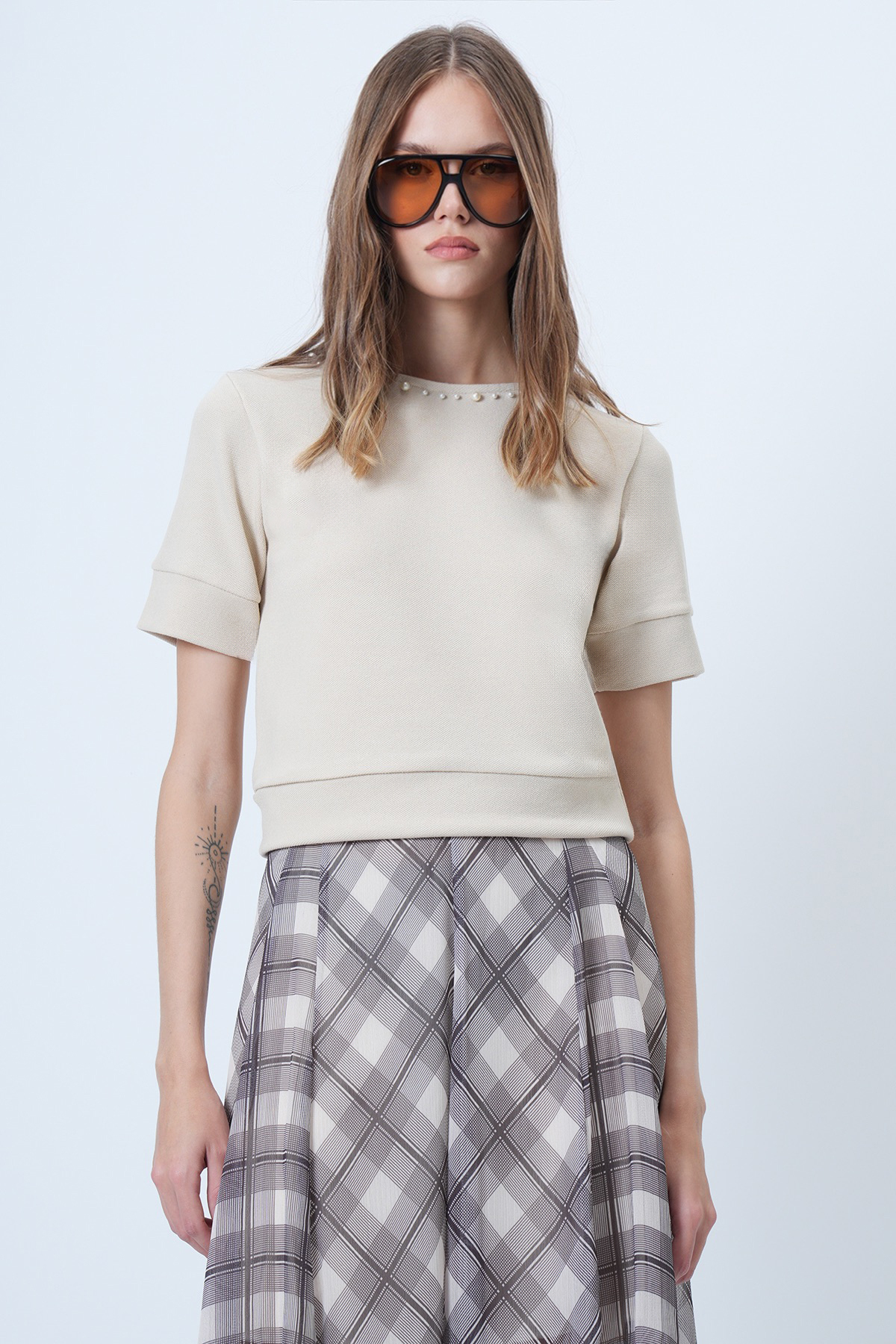 Kadın Beyaz Bisiklet Yaka Yakası İncili Triko Bluz ALC-X14637 Kadın Beyaz Bisiklet Yaka Yakası İncili Triko Bluz ALC-X14637 alcx14637 40