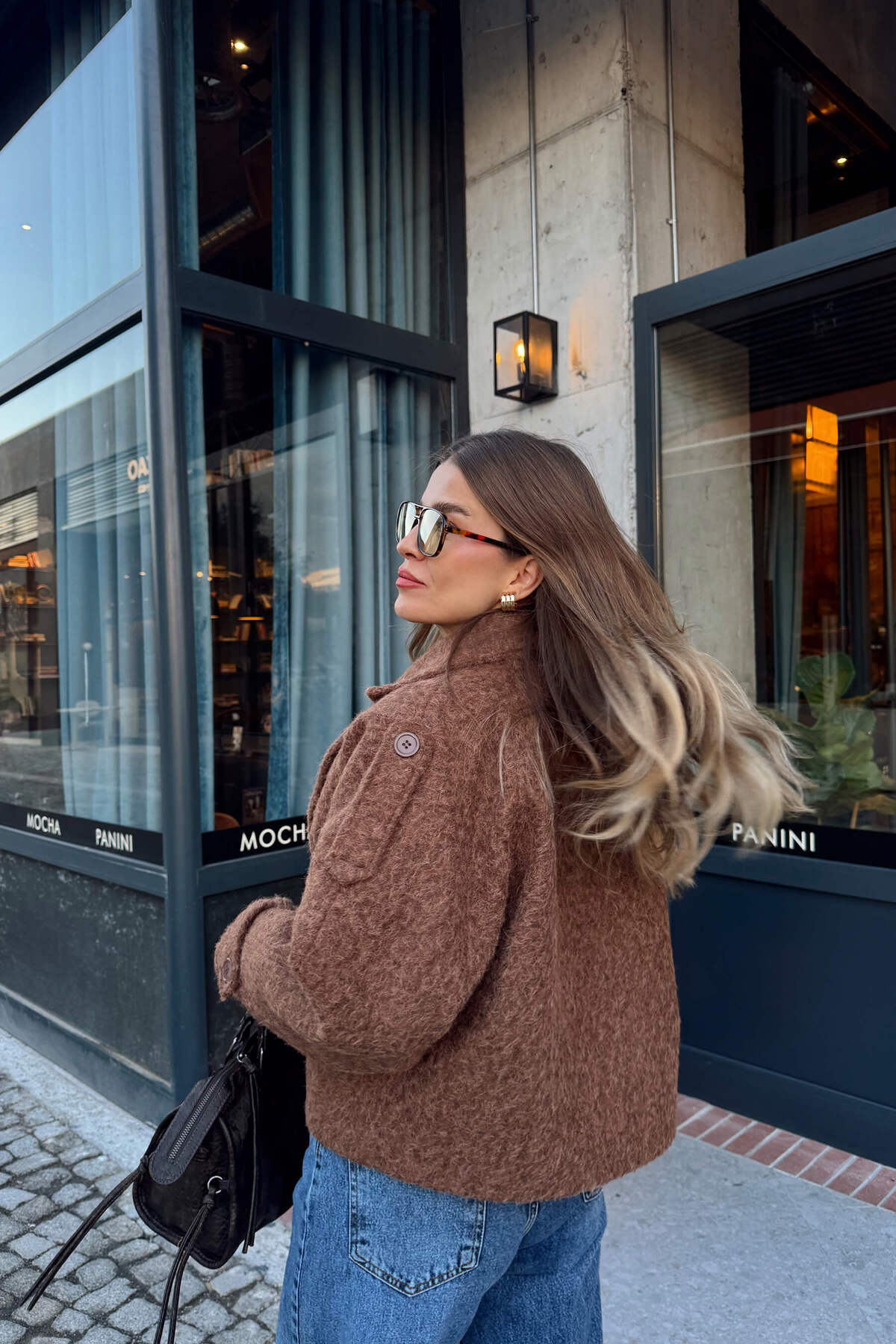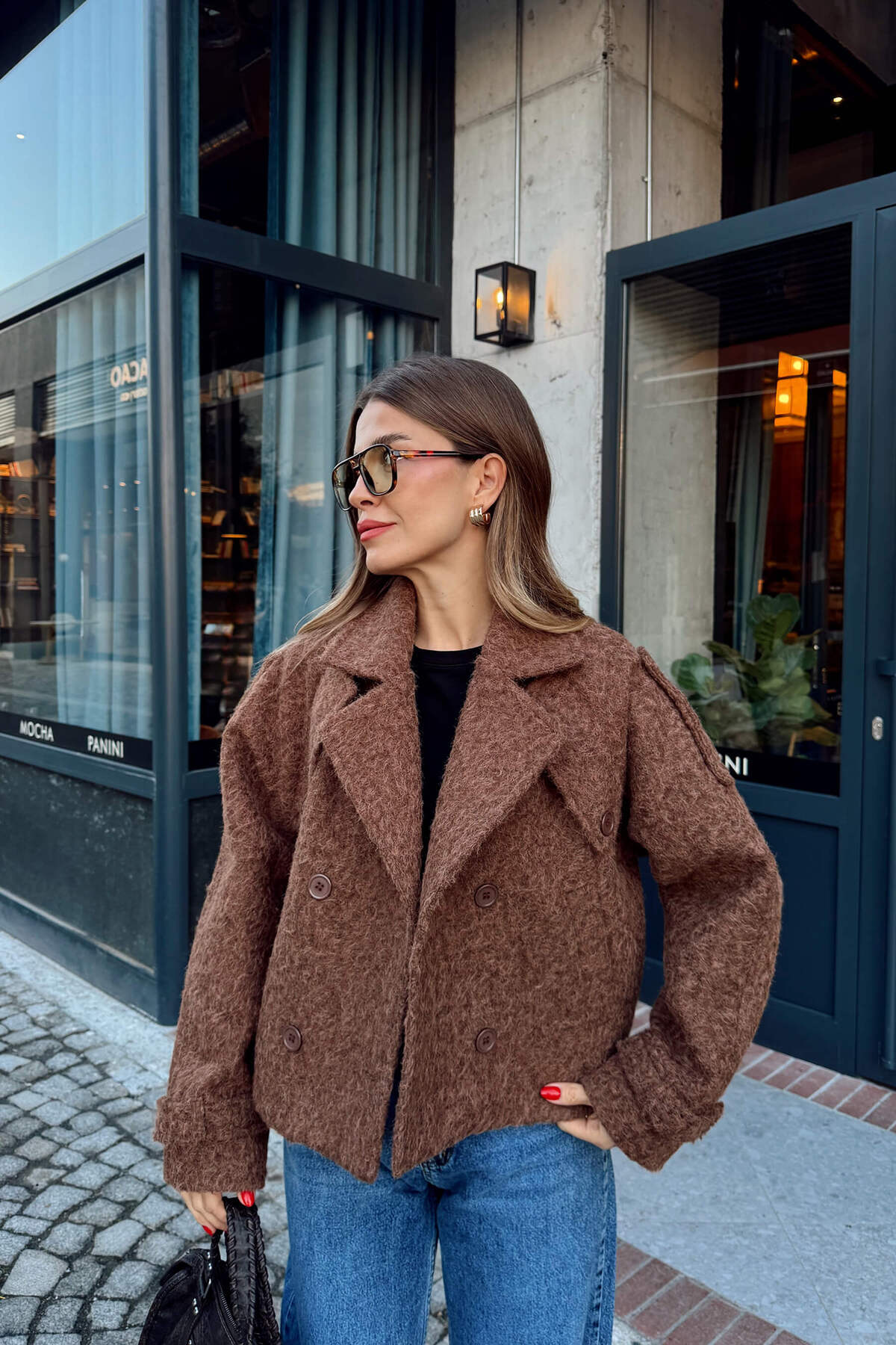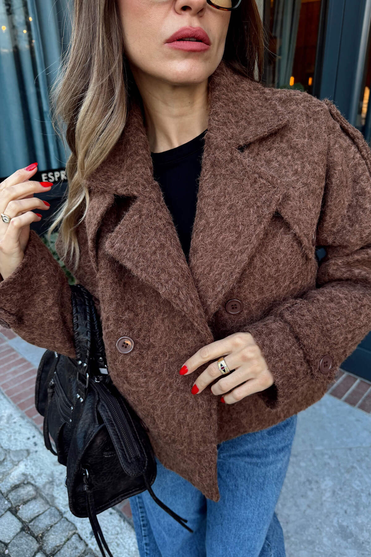 Sütlü Kahve Apoletli Cep Detay Astarlı Yünlü Mont Sütlü Kahve Apoletli Cep Detay Astarlı Yünlü Mont MNT1002 XL