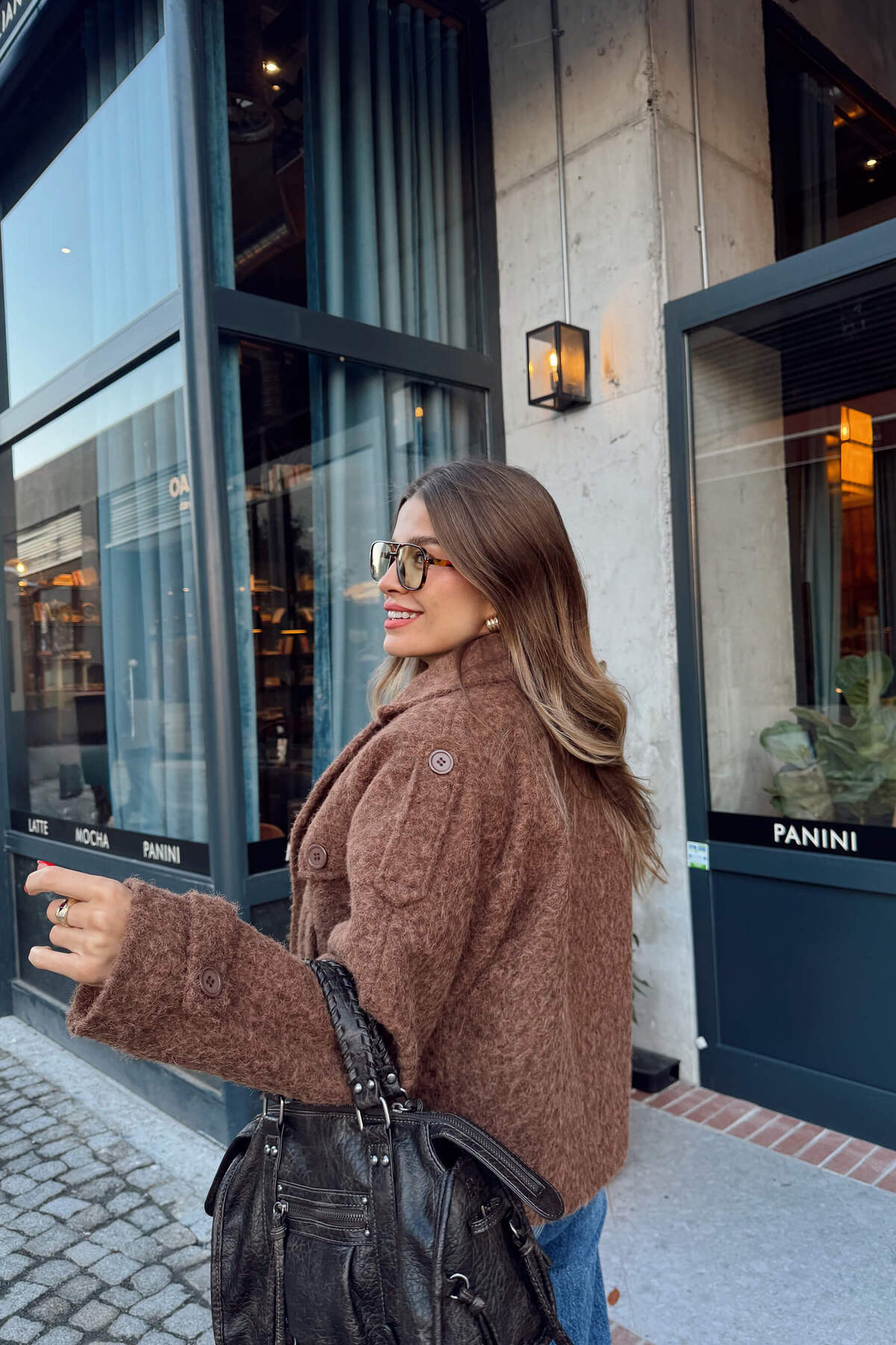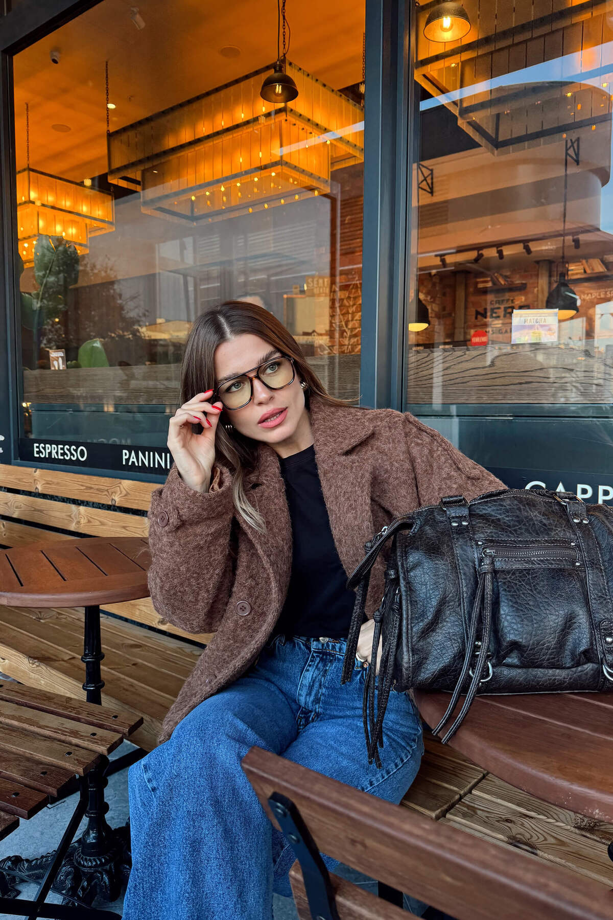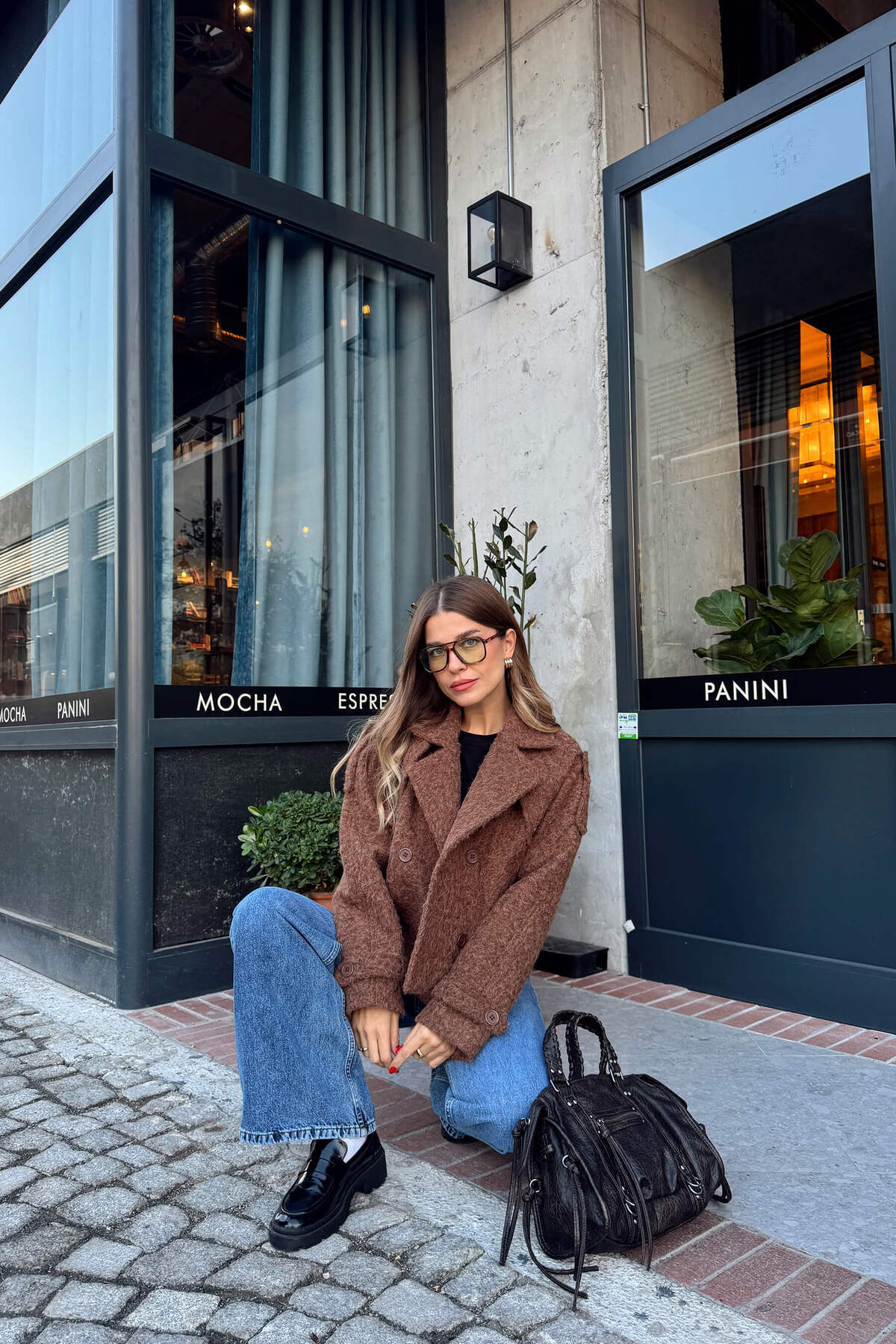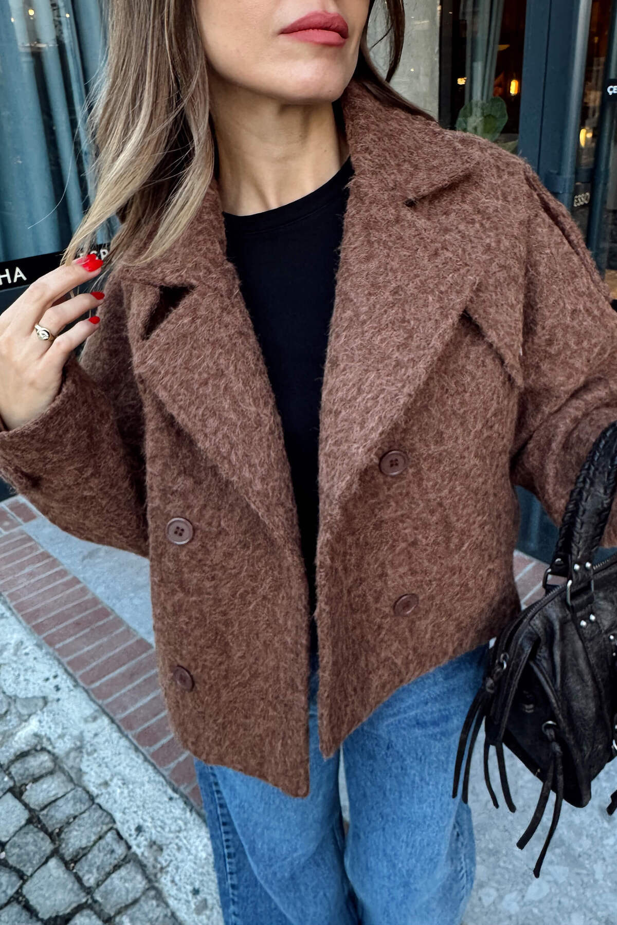 Sütlü Kahve Apoletli Cep Detay Astarlı Yünlü Mont Sütlü Kahve Apoletli Cep Detay Astarlı Yünlü Mont MNT1002 XL