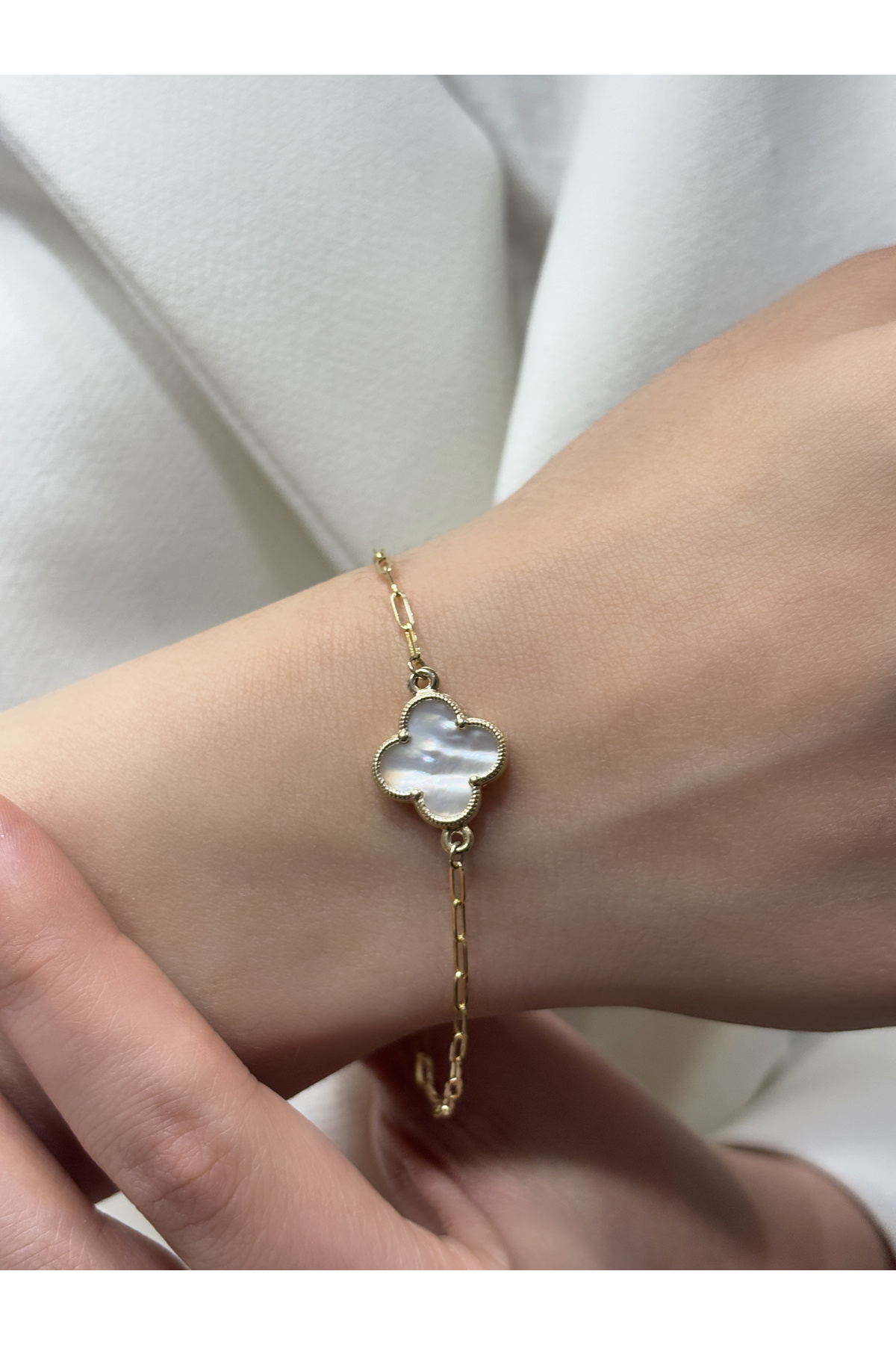 14 Ayar Altın Beyaz Sedefli Yonca Ataç Bileklik 14 Ayar Altın Beyaz Sedefli Yonca Ataç Bileklik AABSYAB 17 cm