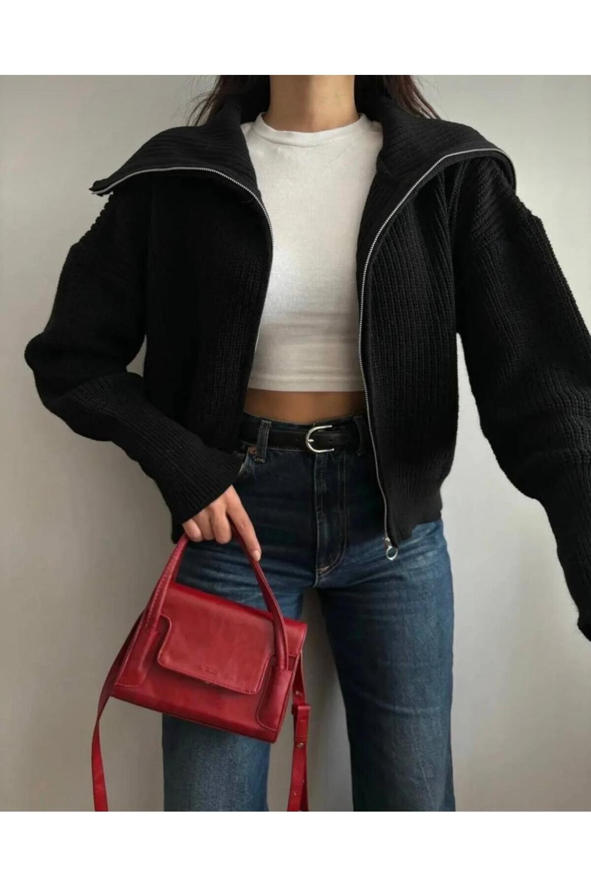 DGN'S DEVRİK YAKA FERMUARLI KOL UÇLARI DAR KADIN TRİKO HIRKA - CEKET DGN'S DEVRİK YAKA FERMUARLI KOL UÇLARI DAR KADIN TRİKO HIRKA - CEKET CEKET19 Standart