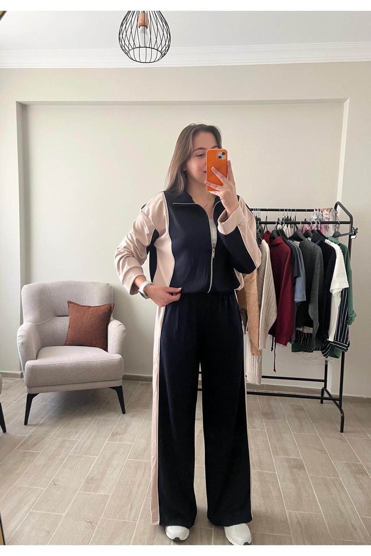 Fermuar Detaylı Yüksek Bel İkili Takım Antrasit & Ekru Fermuar Detaylı Yüksek Bel İkili Takım Antrasit & Ekru SC-TKM-BR-01 XL