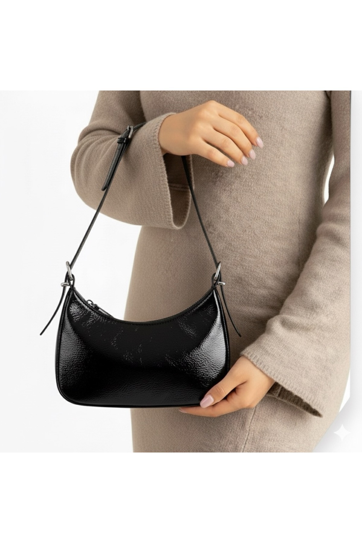Siyah Rugan Omuz Çantası Baget Siyah Rugan Omuz Çantası Baget ABY01 تک سایز