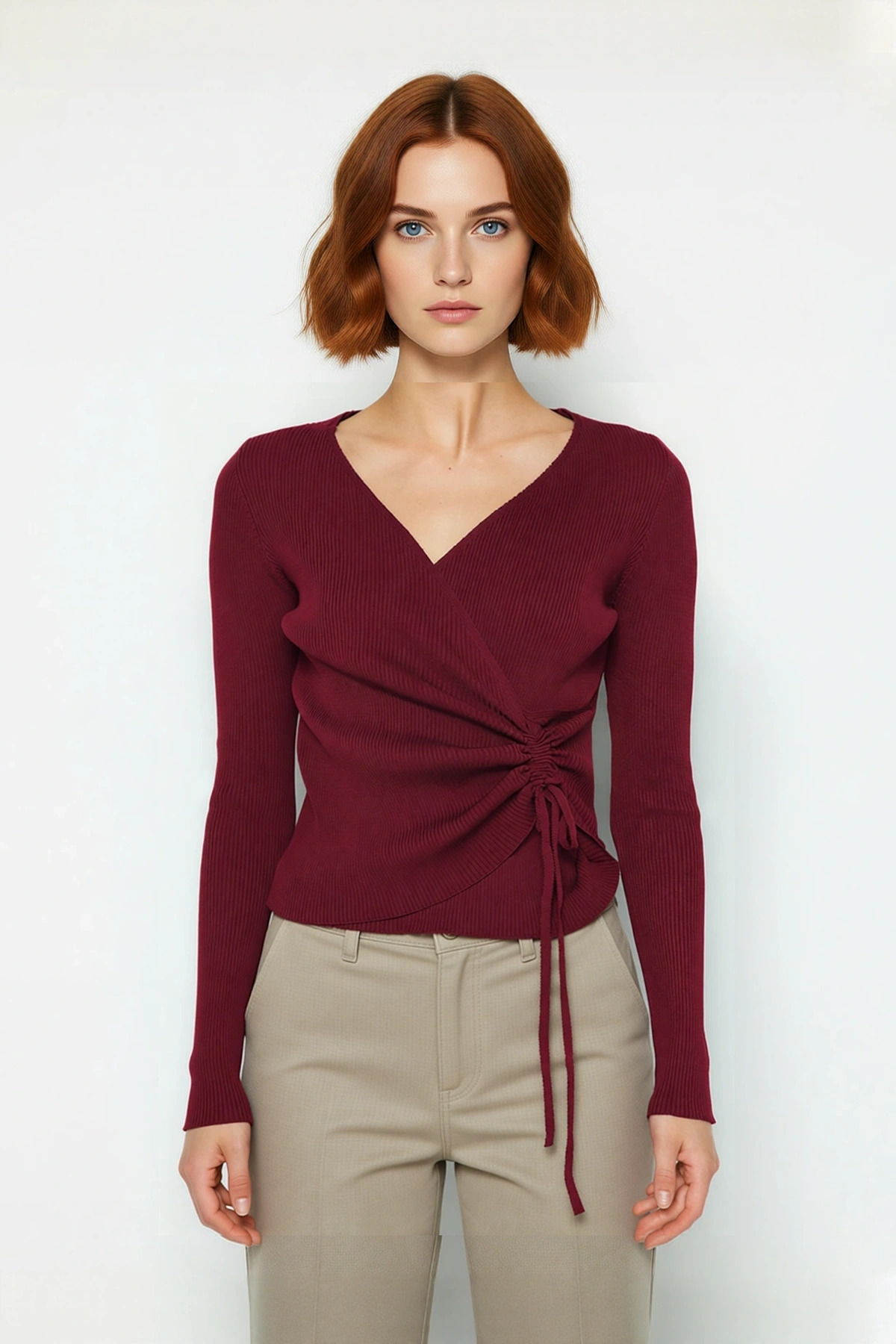 Kadın Fitted Kruvaze Yaka Bağcıklı Triko Üst Modern Günlük Kombinler İçin Şık Ve Rahat Seçim Kadın Fitted Kruvaze Yaka Bağcıklı Triko Üst Modern Günlük Kombinler İçin Şık Ve Rahat Seçim MS4901544516 L