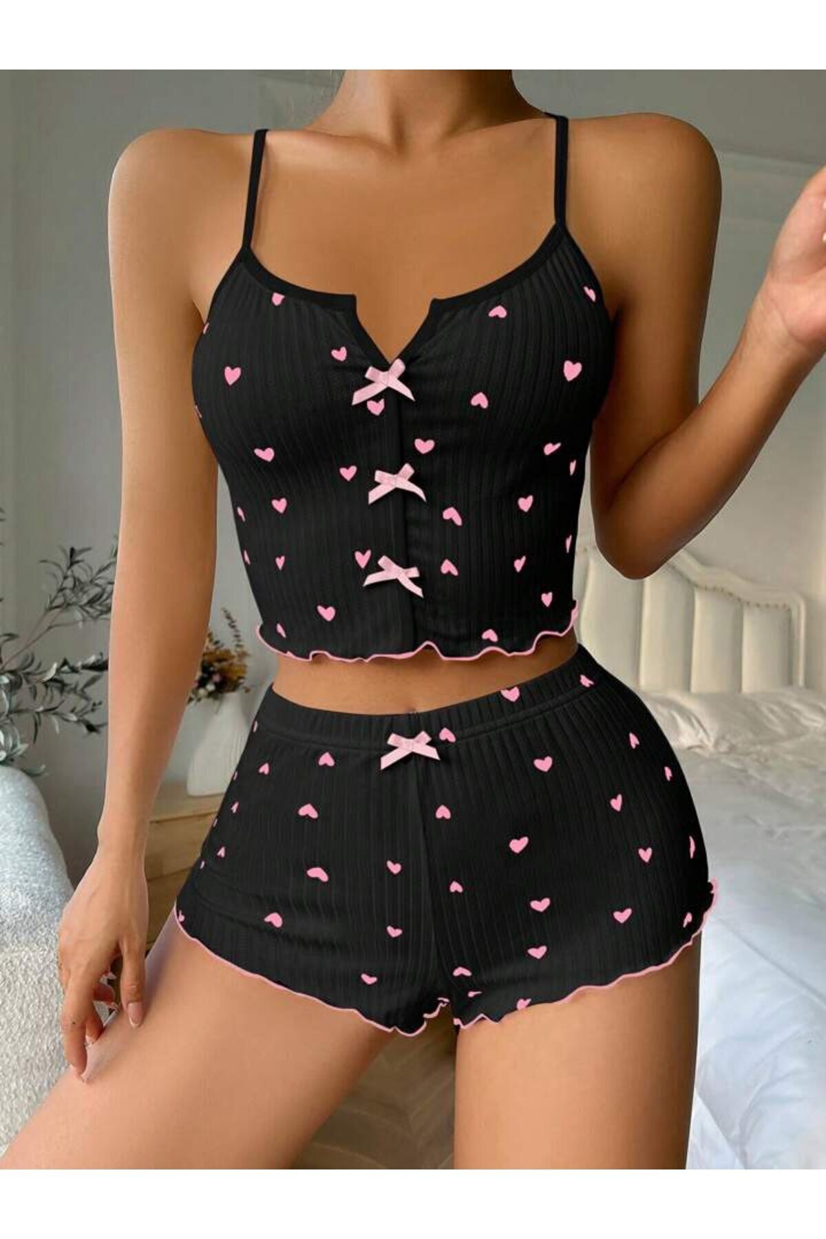 Kadın Siyah İp Askılı Şortlu Pijama Takım Dantel Detaylı Gecelik Çeyizlik Kalp Desenli Yumuşacık Kadın Siyah İp Askılı Şortlu Pijama Takım Dantel Detaylı Gecelik Çeyizlik Kalp Desenli Yumuşacık 1-İP-ASK-PCM 2XL