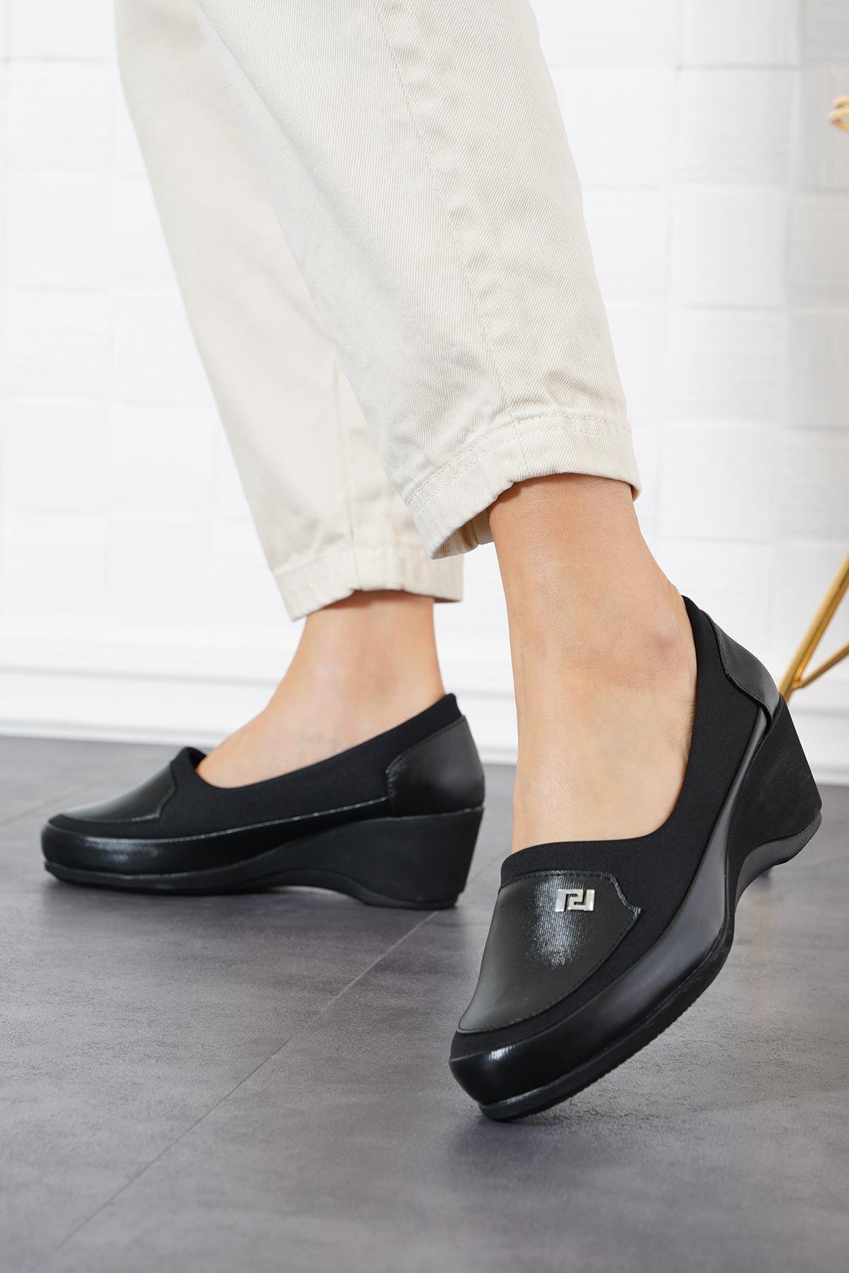 22513 Siyah Hakiki Deri Dolgu Topuklu Kadın Ayakkabı 22513 Siyah Hakiki Deri Dolgu Topuklu Kadın Ayakkabı TXD047007E5303 40