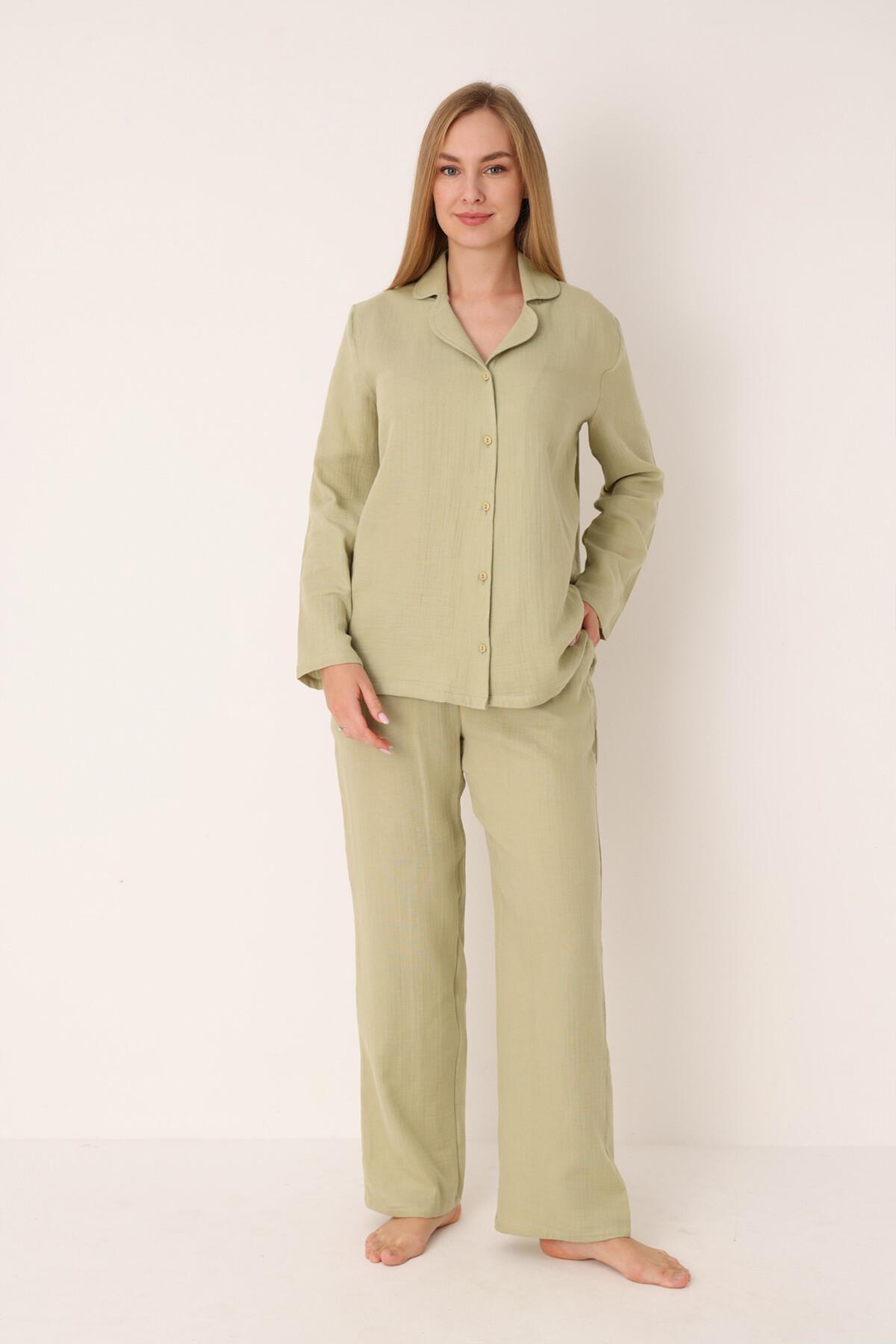 %100 Pamuk, Müslin Dokuma, Önden Düğmeli, Gömlek Yakalı Kadın Pijama Takım %100 Pamuk, Müslin Dokuma, Önden Düğmeli, Gömlek Yakalı Kadın Pijama Takım NBB68275-SREN 2XL