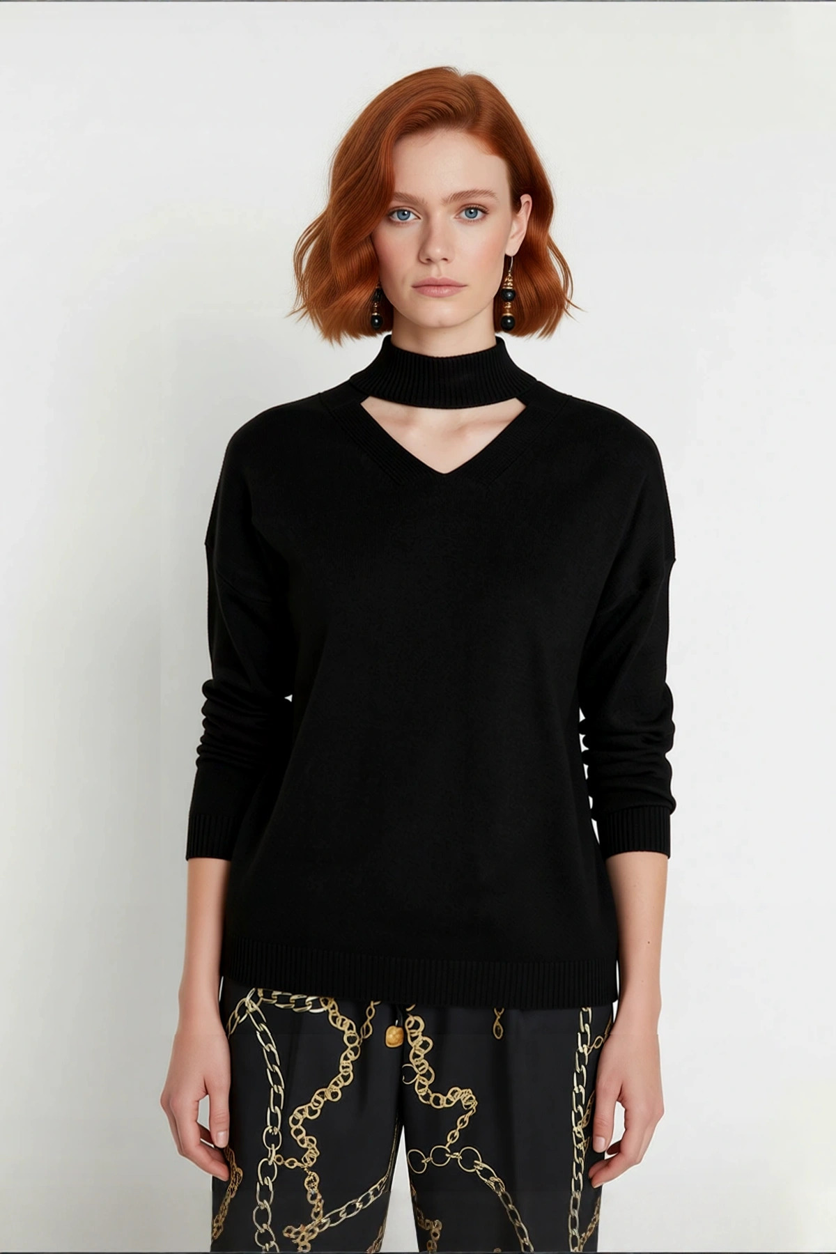 Kadın Siyah Regular Kalıp Choker Yaka Triko Kazak Modern Şıklığı Kışın Sıcak Tutuşla Birleştiriyor Kadın Siyah Regular Kalıp Choker Yaka Triko Kazak Modern Şıklığı Kışın Sıcak Tutuşla Birleştiriyor MS8819158696 L