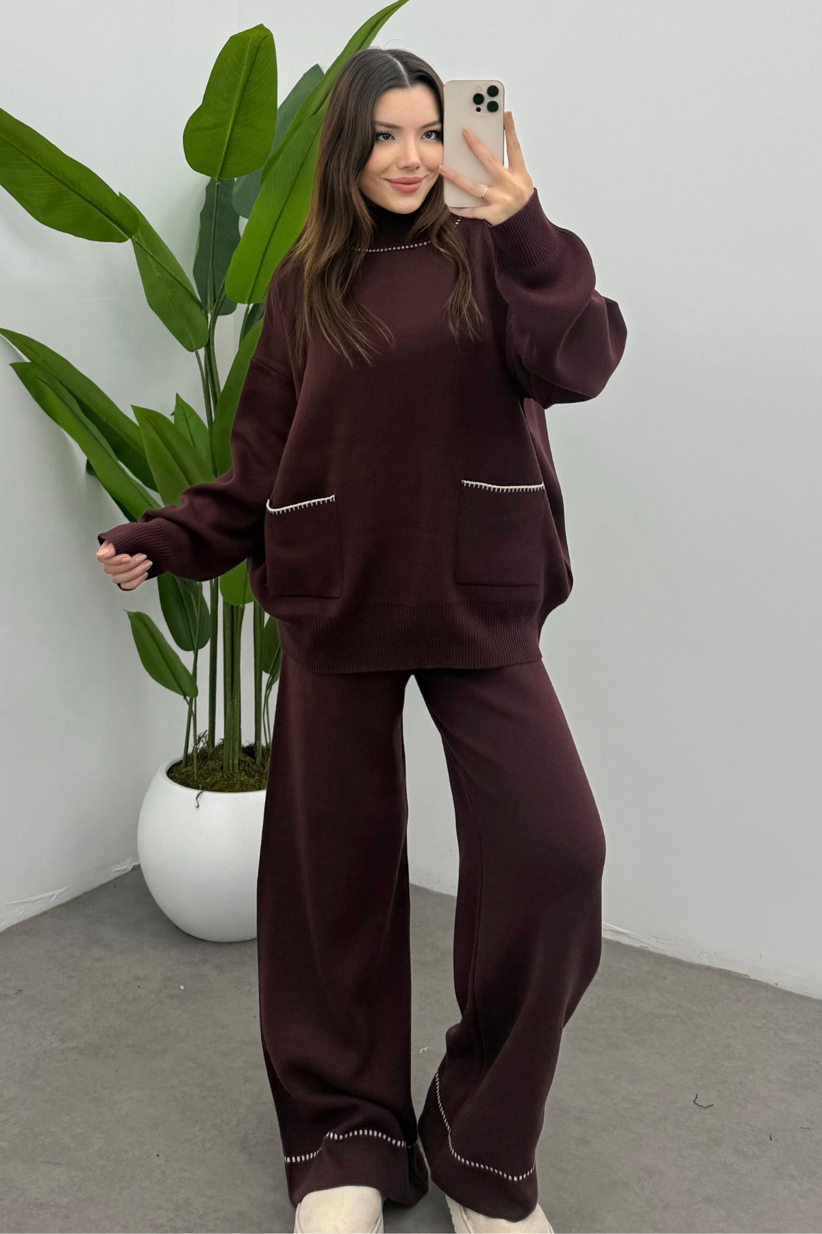 Kadın Bordo Balıkçı Yaka Cep Detaylı Kazak Pantolon Triko Takım Kadın Bordo Balıkçı Yaka Cep Detaylı Kazak Pantolon Triko Takım 2025 Standart