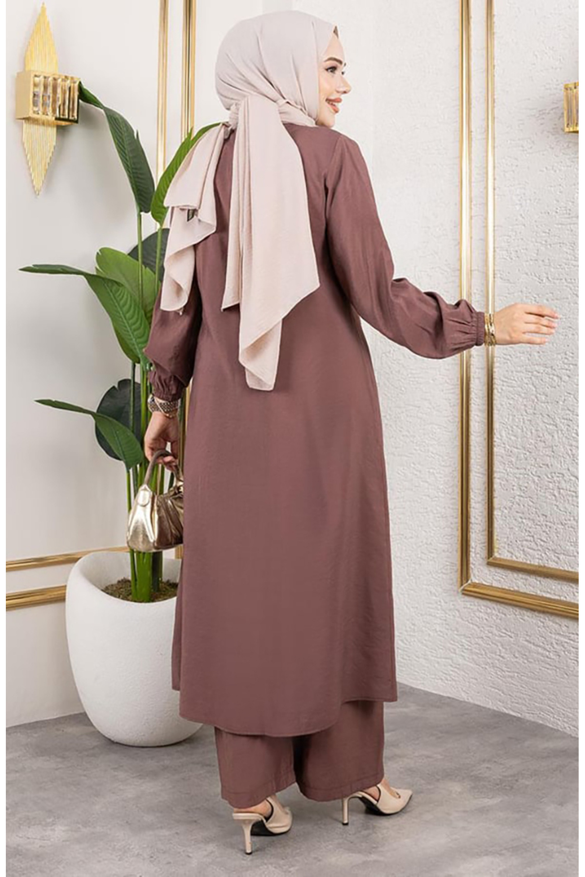 Uzun Tunikli Modal Takım 0330-02 Kahverengi Uzun Tunikli Modal Takım 0330-02 Kahverengi NEWSLS0330 56