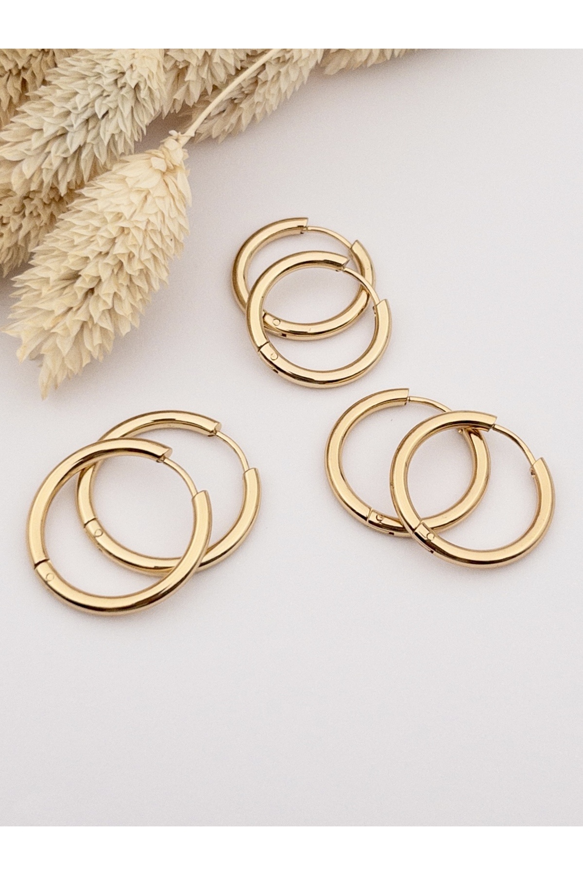 Unisex 316l Cerrahi Çelik Gold Renk 3 Çift Set Halka Küpe - 3 Boy 21-23-25 mm Unisex 316l Cerrahi Çelik Gold Renk 3 Çift Set Halka Küpe - 3 Boy 21-23-25 mm SYKP1875 تک سایز