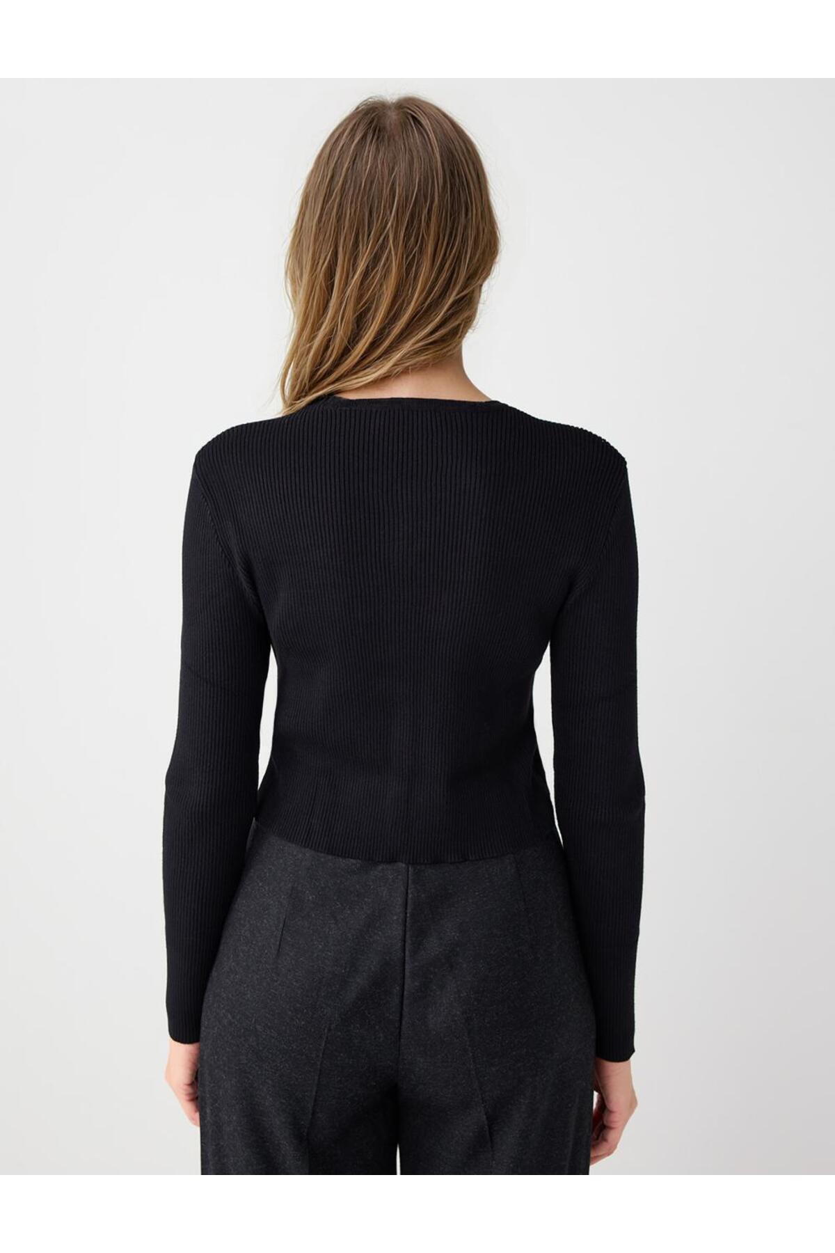 Siyah Dar Kesim Yuvarlak Yaka Taş İşlemeli Triko Hırka Siyah Dar Kesim Yuvarlak Yaka Taş İşlemeli Triko Hırka 5WW104573 XL