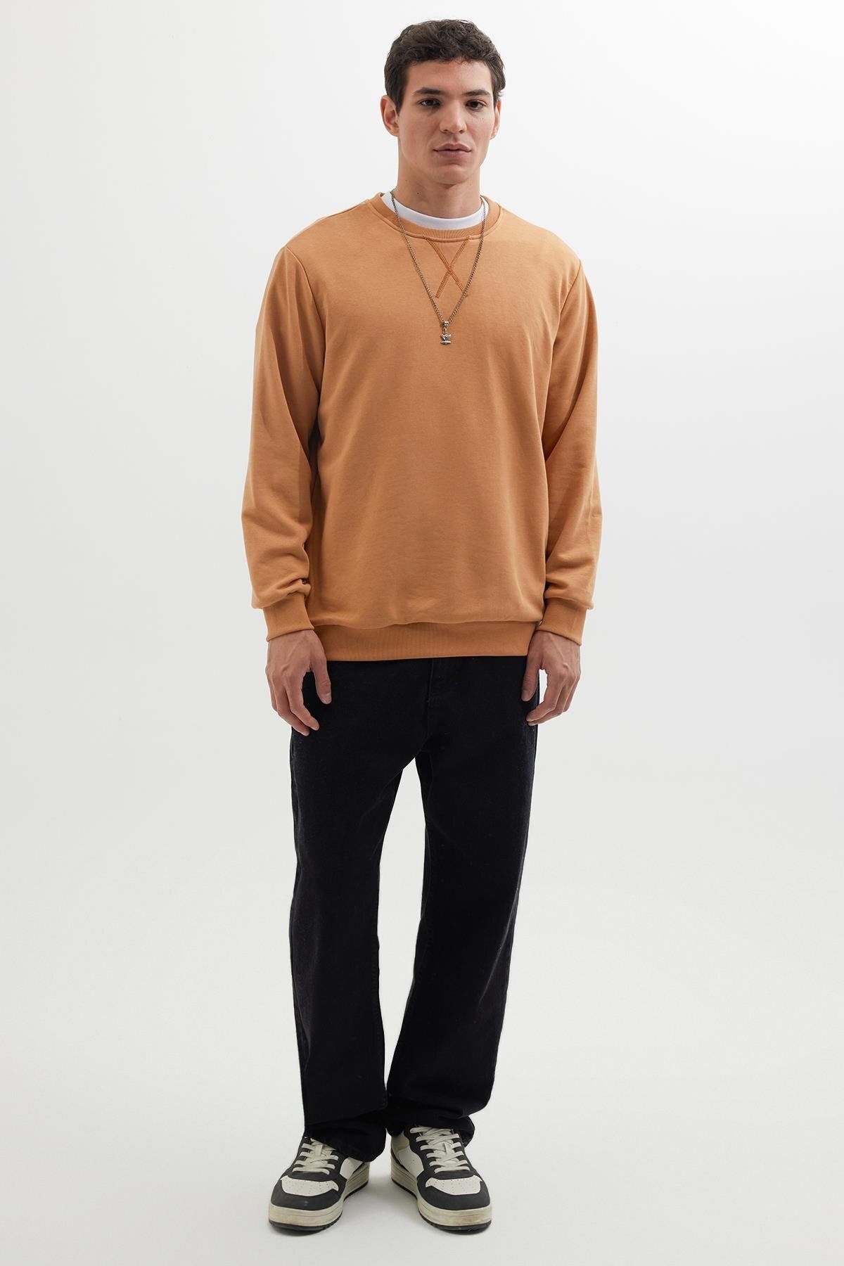 Unisex Relax Fit Rahat Kesim %100 Pamuk Basic Camel Bisiklet Yaka Sweatshirt Unisex Relax Fit Rahat Kesim %100 Pamuk Basic Camel Bisiklet Yaka Sweatshirt SW230001-OCB 3XL