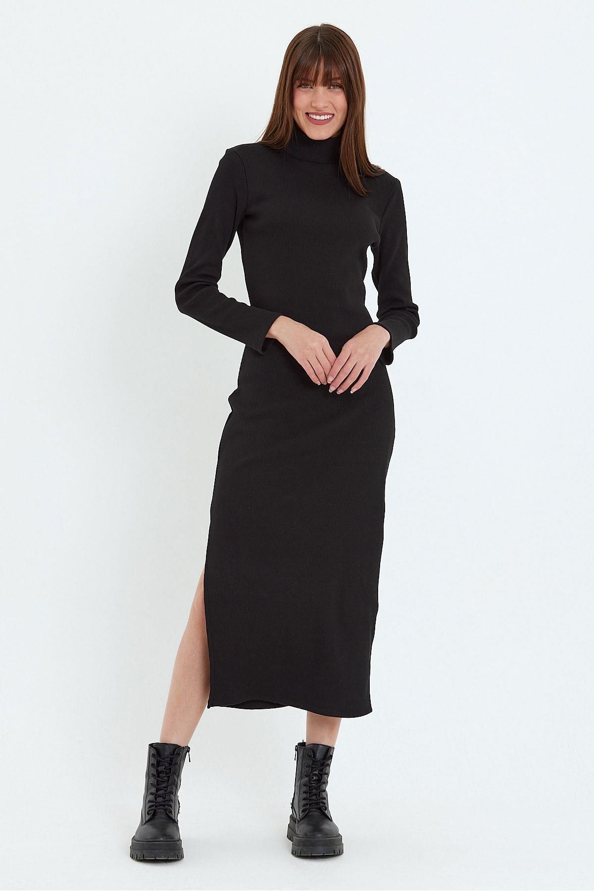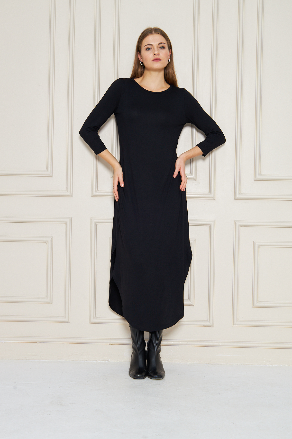 Kadın Uzun Kollu Etegi Oval Yırtmajlı Midi Boy Salaş Elbise Kadın Uzun Kollu Etegi Oval Yırtmajlı Midi Boy Salaş Elbise SRL-S00239 2XL