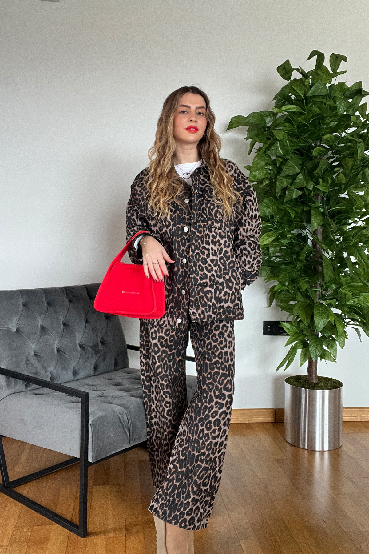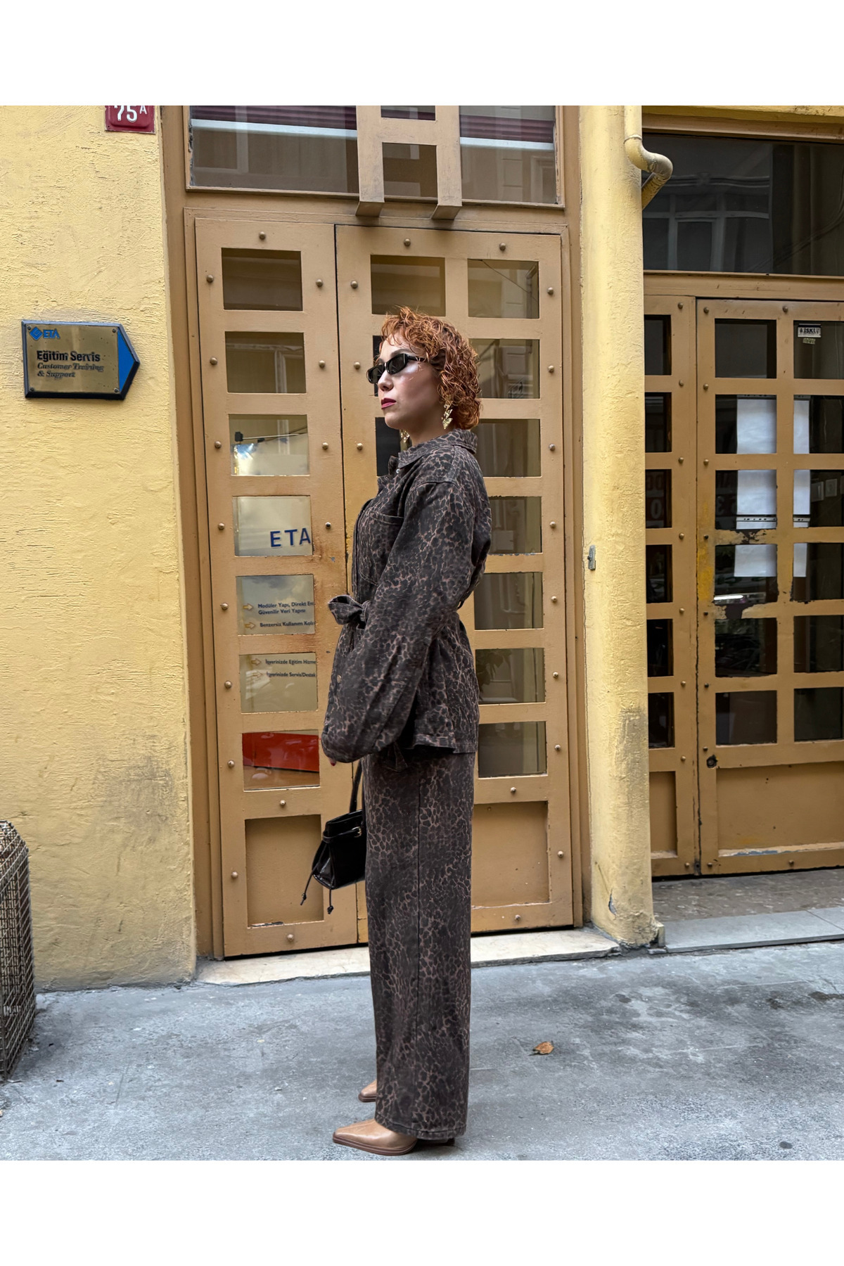 Premium Denim Leopar Desenli Ceket-Pantolon 2'li Denim Kot Takım Premium Denim Leopar Desenli Ceket-Pantolon 2'li Denim Kot Takım Leopar Desenli Ceket-Pantolon Noktur L