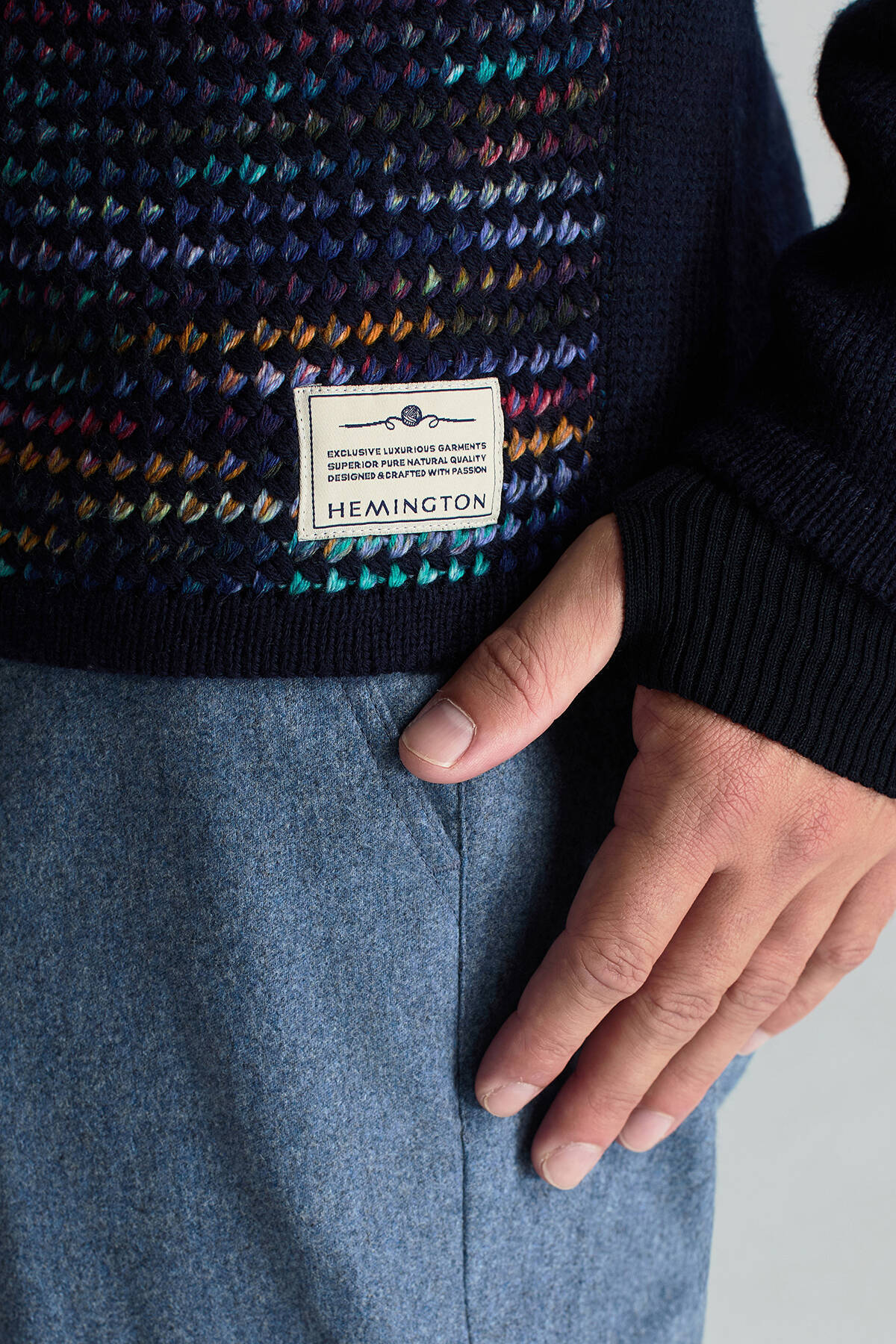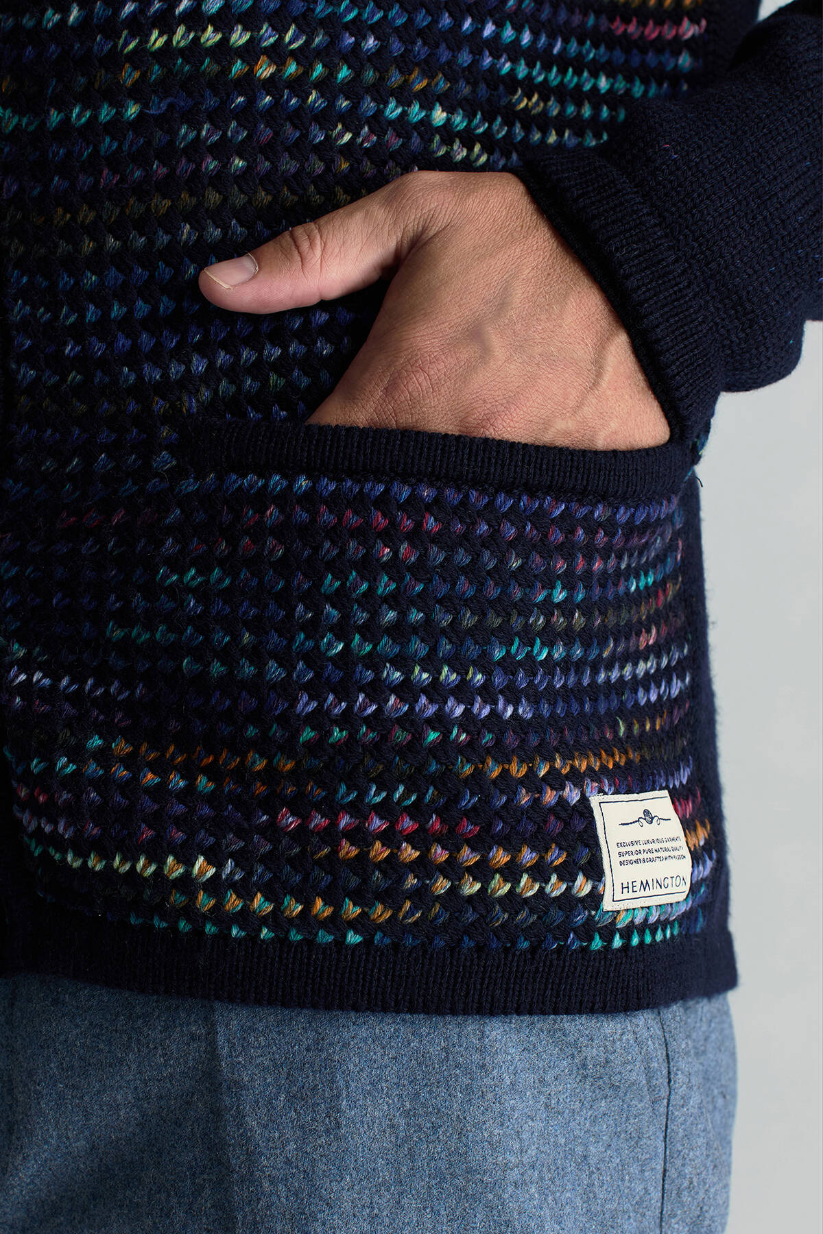 Merino Yün Etnik Desen Düğmeli Lacivert Hırka Merino Yün Etnik Desen Düğmeli Lacivert Hırka 254015|010 3XL