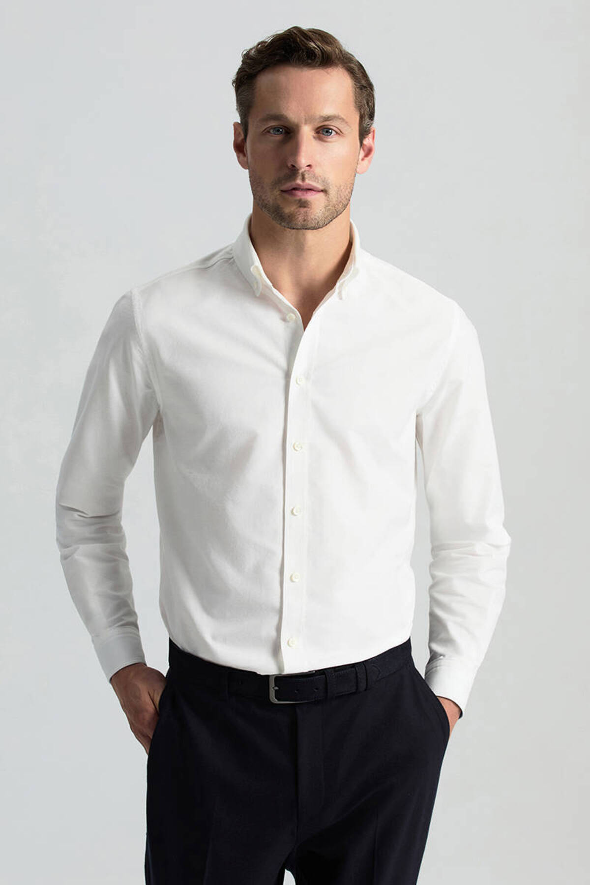 Supima Pamuk Yumuşak Dokulu Gizli Düğme Beyaz Business Gömlek Supima Pamuk Yumuşak Dokulu Gizli Düğme Beyaz Business Gömlek IC0117|039 3XL