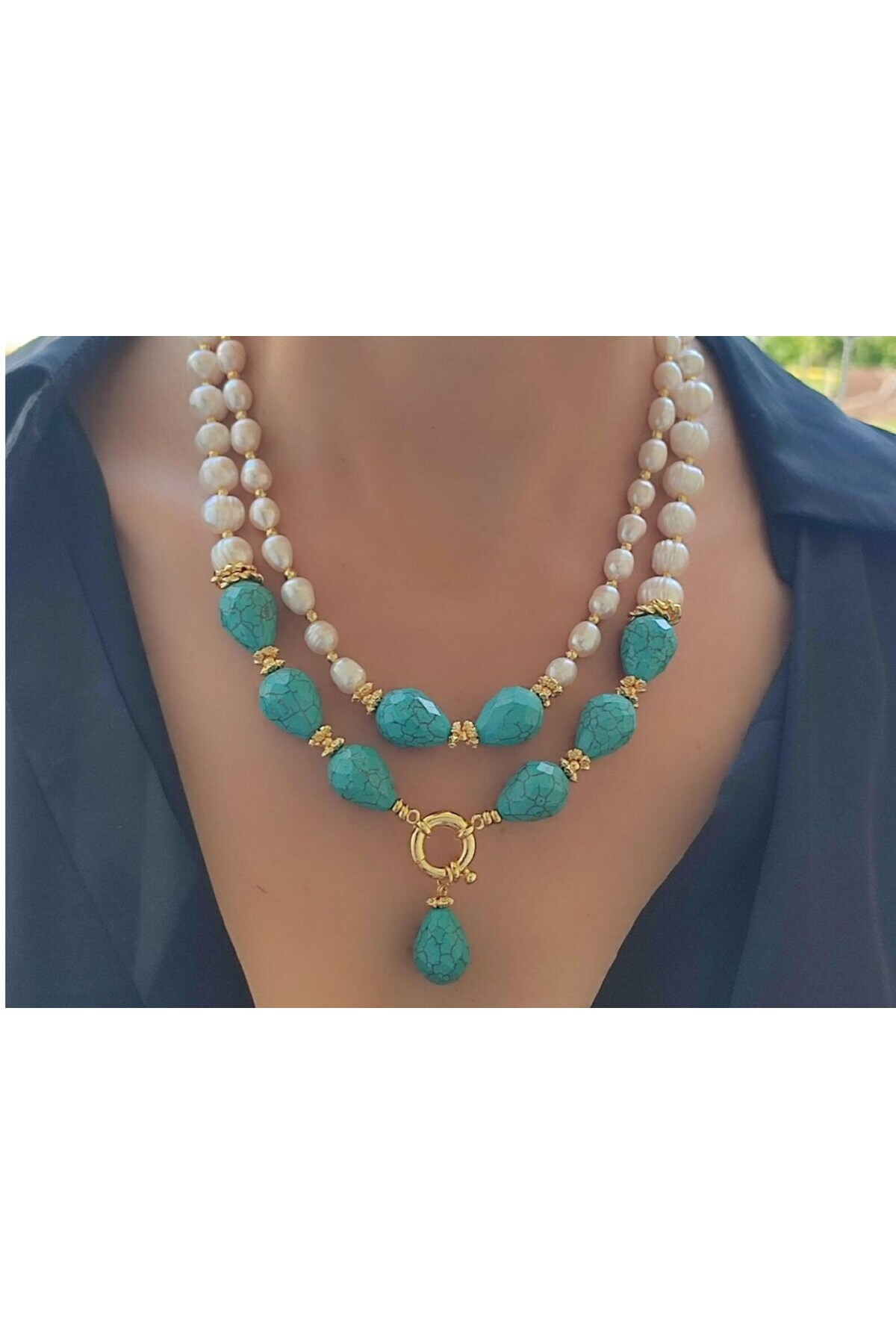 Turkuaz inci tasarım kolye el yapımı doğaltaş kolye değerli taş kolye Turkuaz inci tasarım kolye el yapımı doğaltaş kolye değerli taş kolye elinaturkuazinci تک سایز