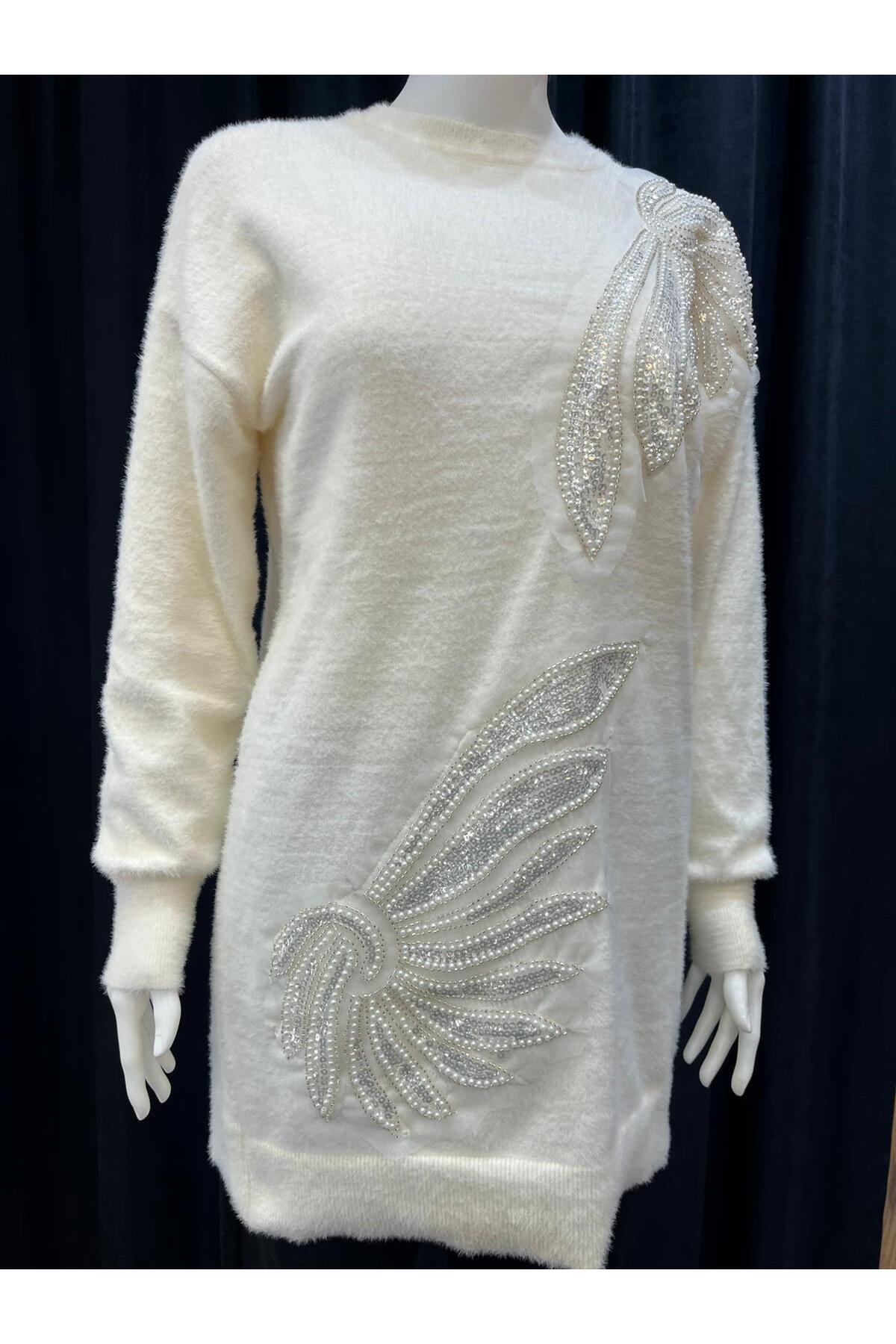 taş işlemeli pelış triko tunik taş işlemeli pelış triko tunik edrfttt M/L