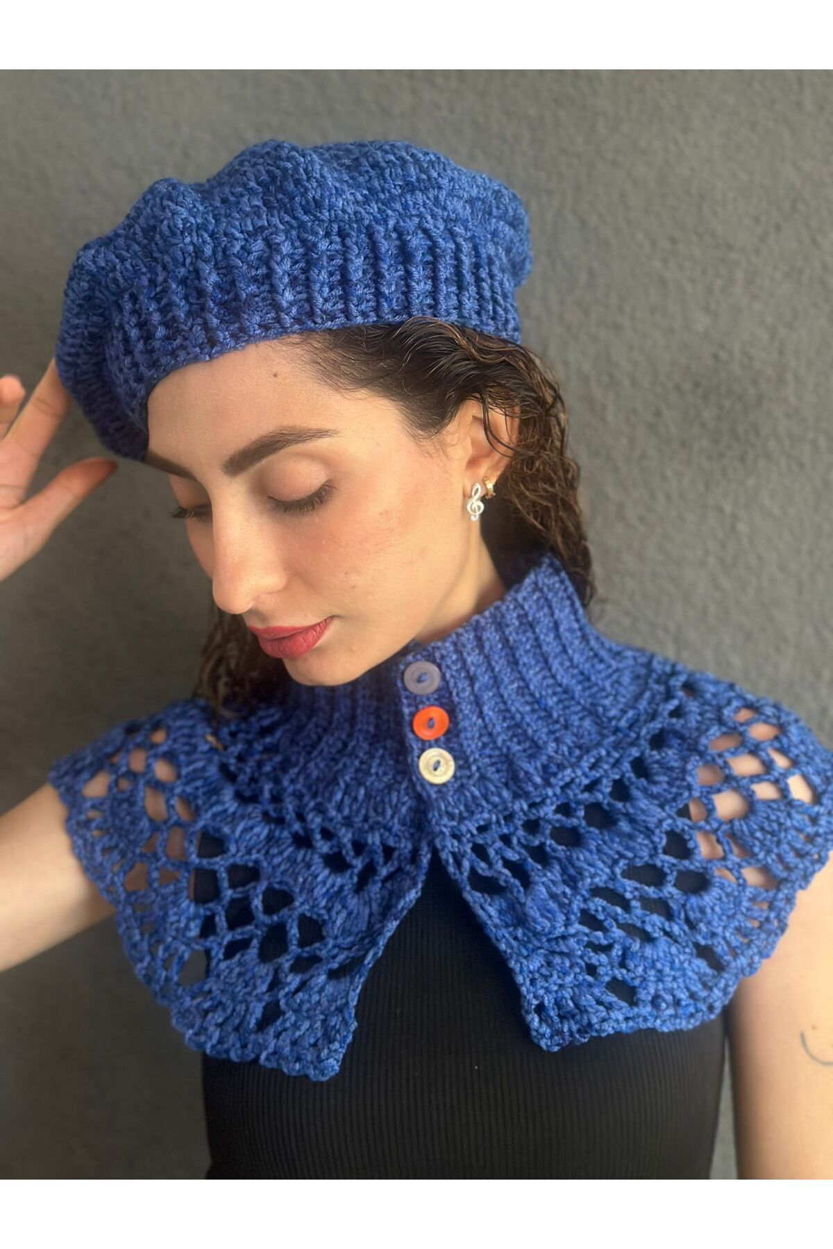 EL ÖRGÜSÜ FRANSIZ RESSAM BERE VE BOYUNLUK SET MAVİ EL ÖRGÜSÜ FRANSIZ RESSAM BERE VE BOYUNLUK SET MAVİ 1212181875150G تک سایز