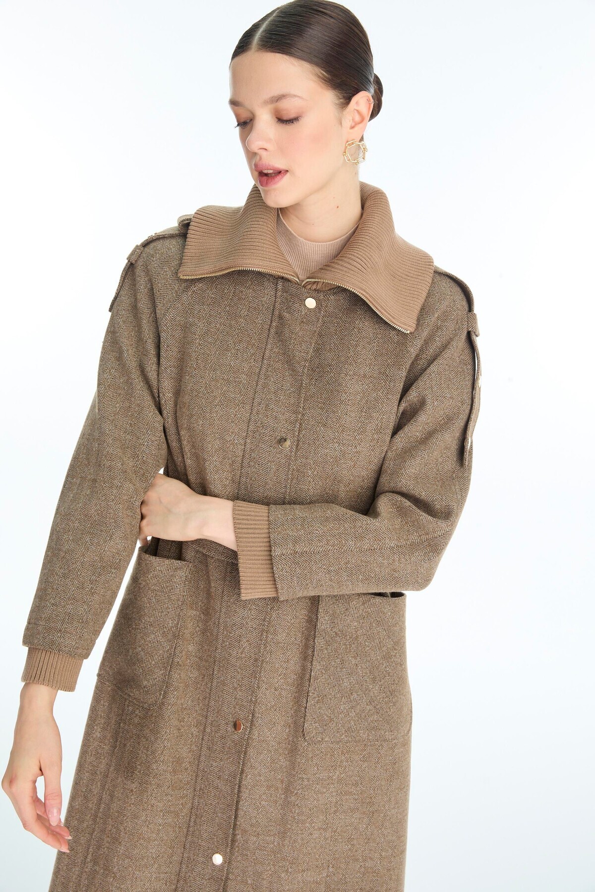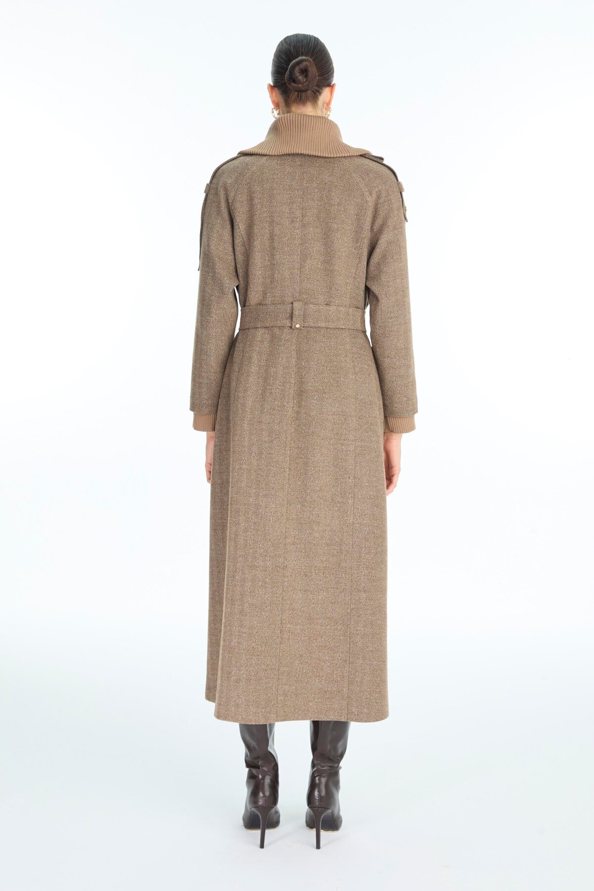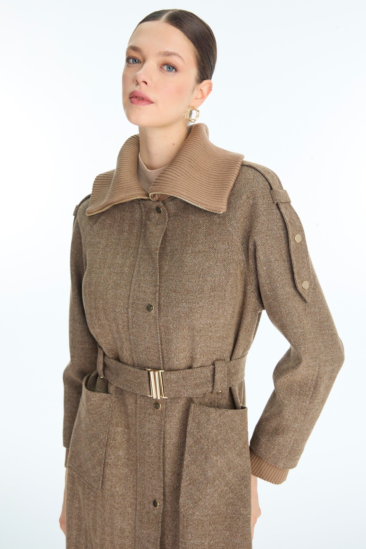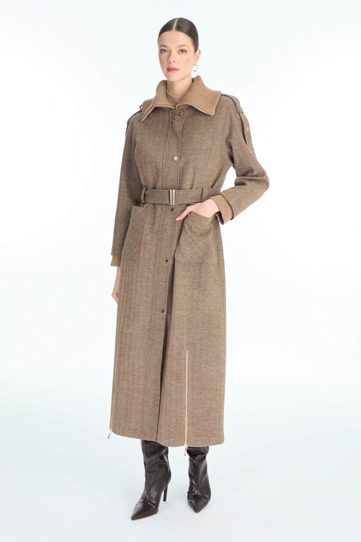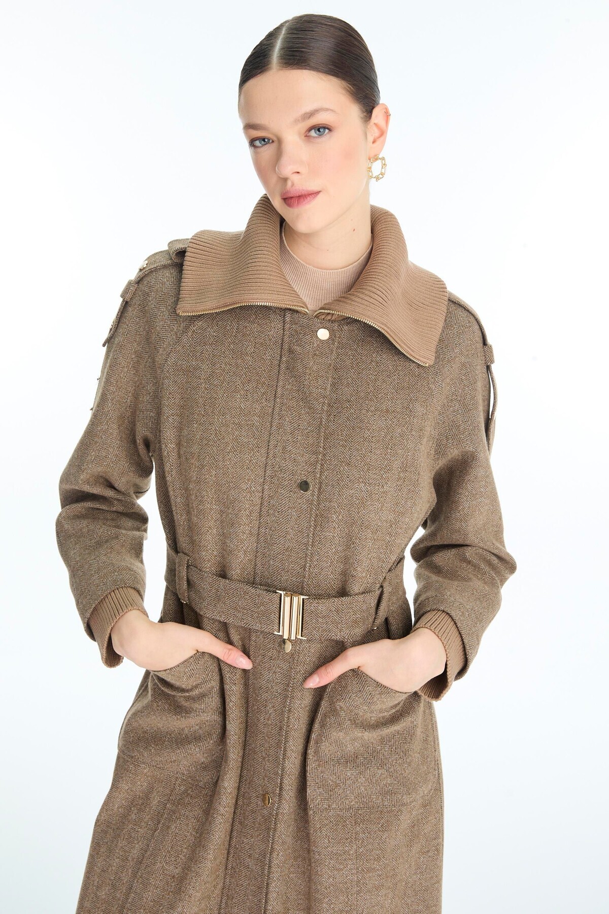 Yaka ve Cep Detaylı Kemerli Vizon Kaban 13963 Yaka ve Cep Detaylı Kemerli Vizon Kaban 13963 46