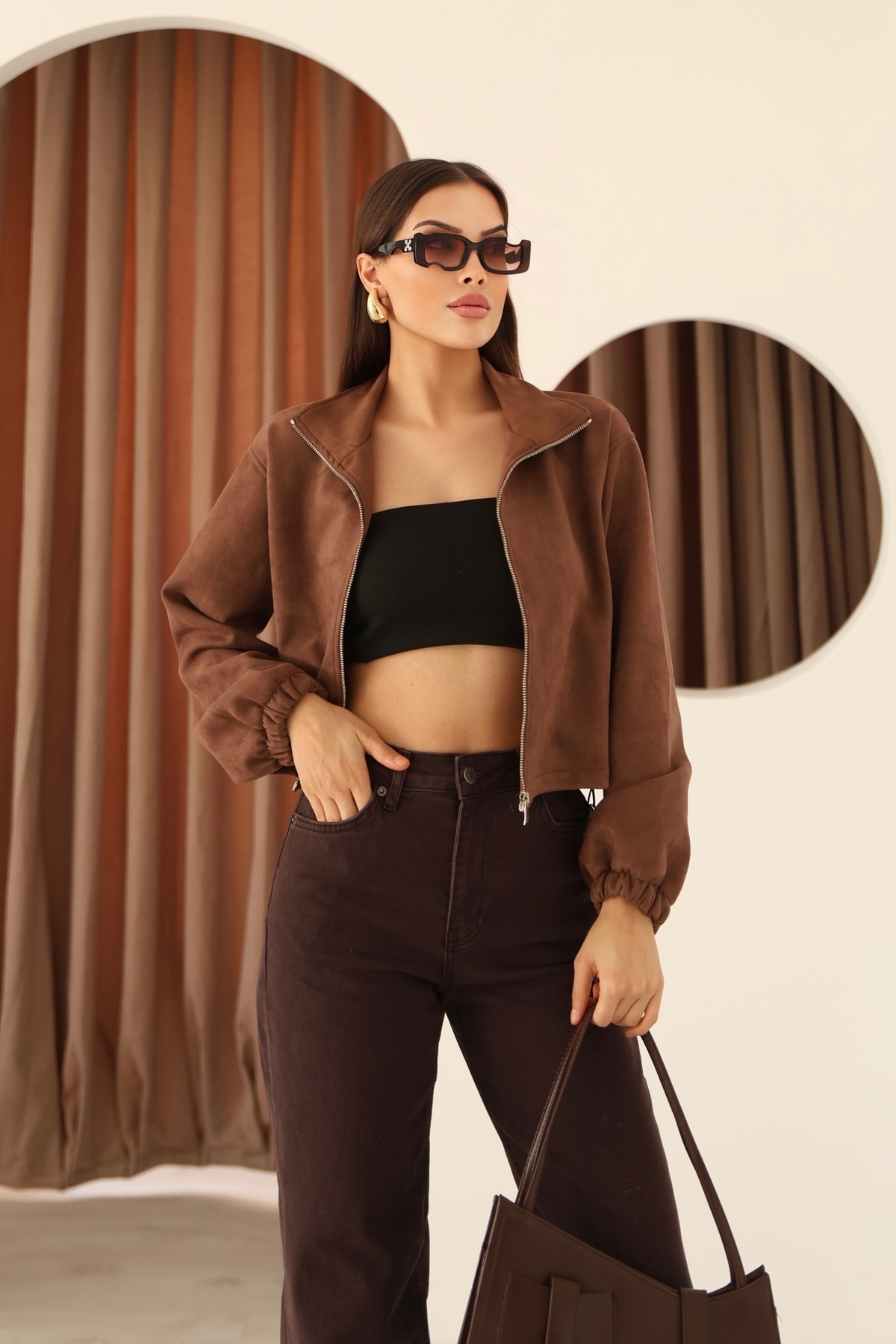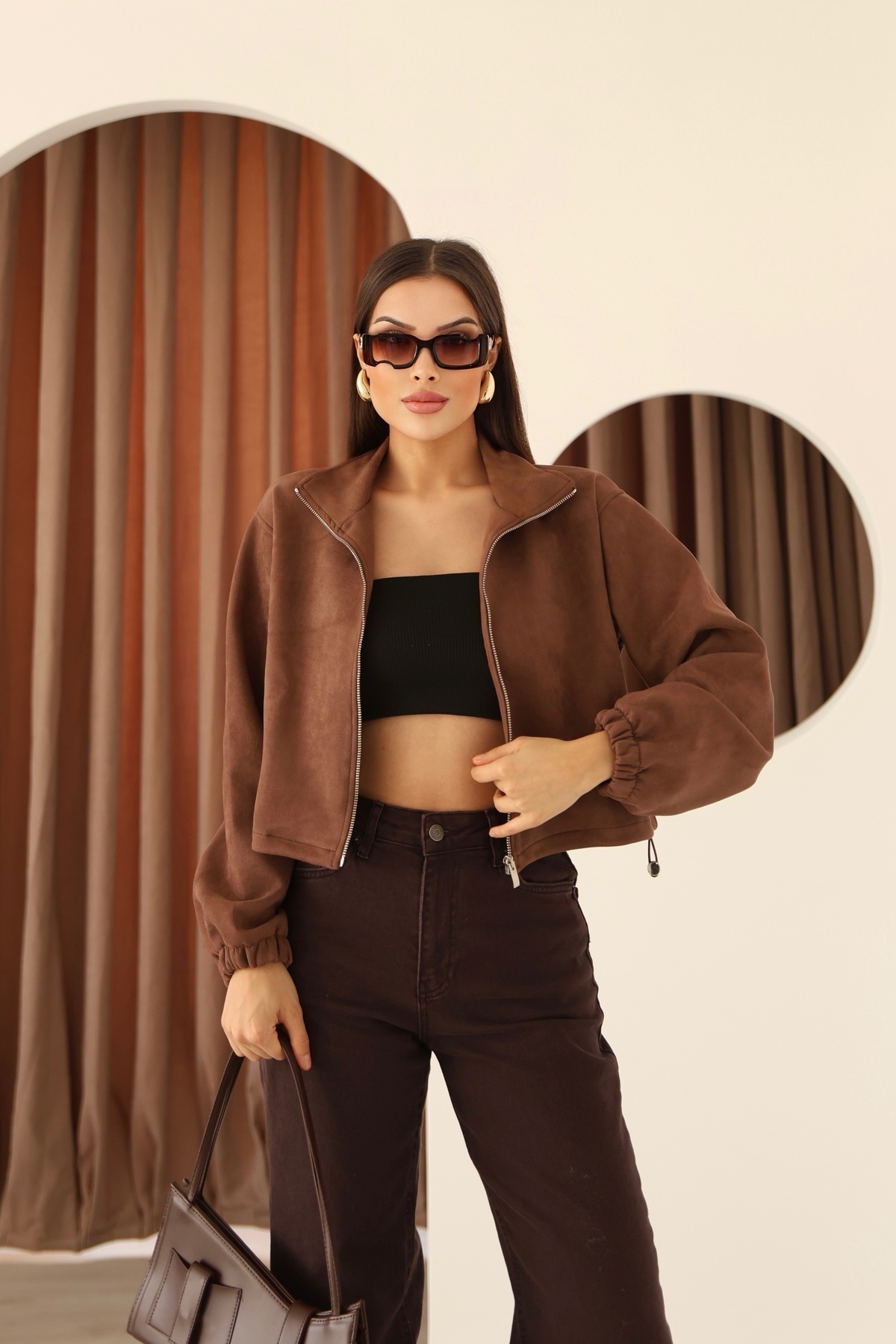 Kadın Kahverengi Süet Dik Yaka Fermuar ve Etek Ucu Stoper Detaylı Ceket Kadın Kahverengi Süet Dik Yaka Fermuar ve Etek Ucu Stoper Detaylı Ceket MM25CE0474-Kahverengi XL