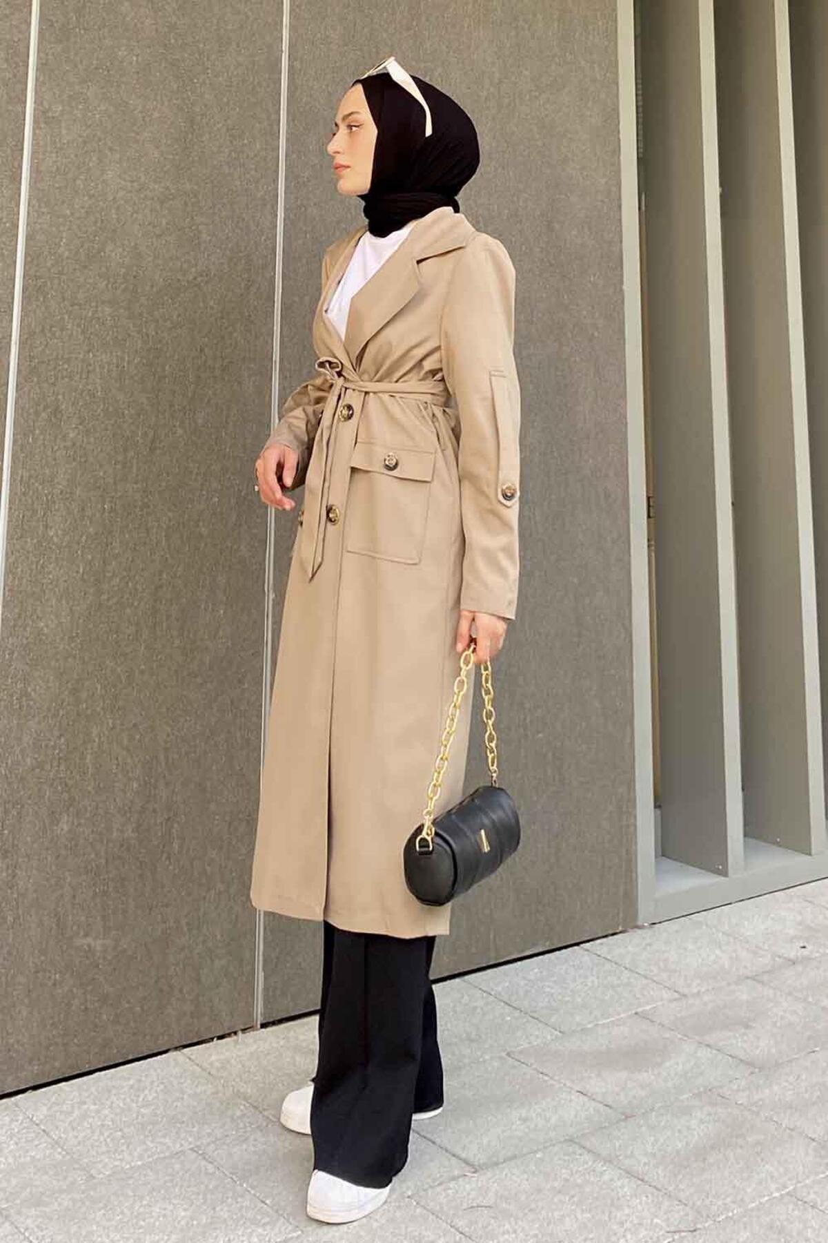Pelican Ön Düğmeli Trençkot vizonrengi Pelican Ön Düğmeli Trençkot vizonrengi EYO4316 XL