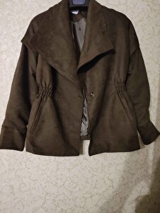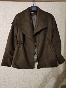 süet nubuk kumaş astarlı tasarım büyük ceket yaka tek düğme bele oturan büzgülü mont ceket süet nubuk kumaş astarlı tasarım büyük ceket yaka tek düğme bele oturan büzgülü mont ceket 7fmnnbkmnt M