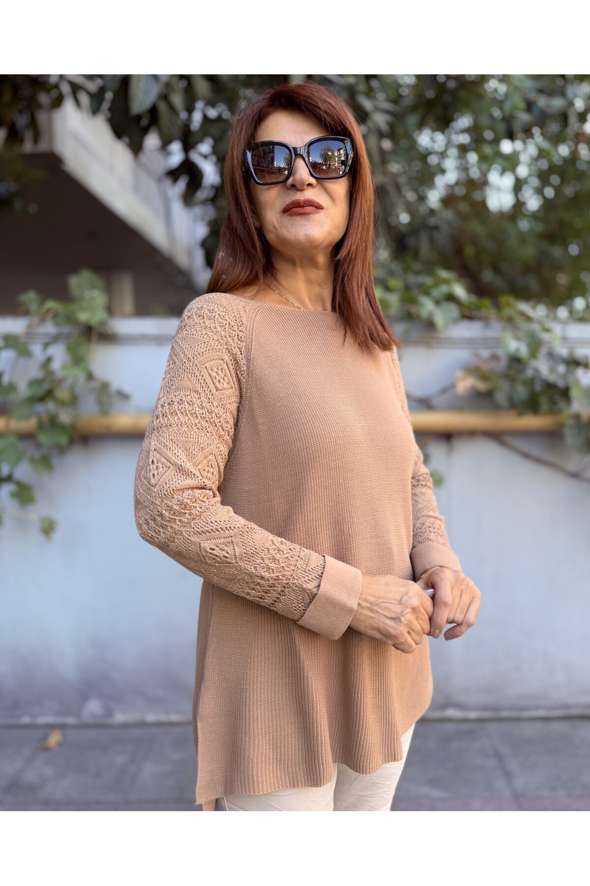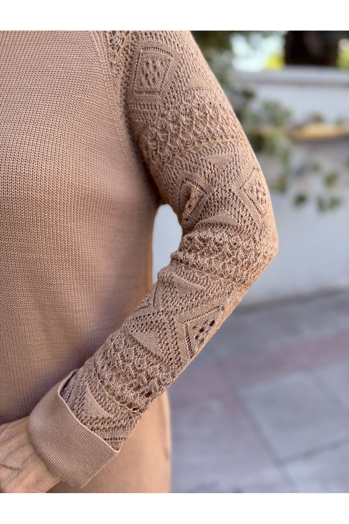 Simli Nakışlı Kol Detay Kazak Kahve Simli Nakışlı Kol Detay Kazak Kahve DE8000 Standart