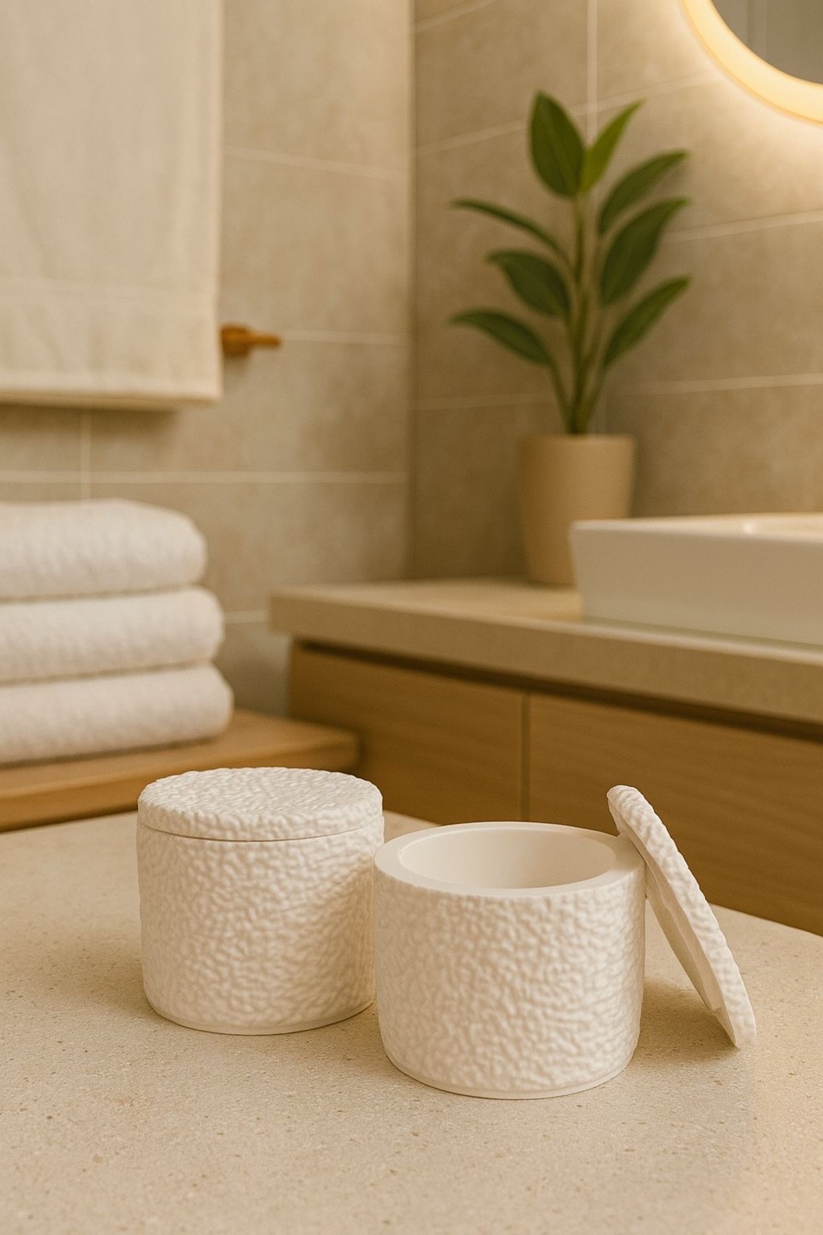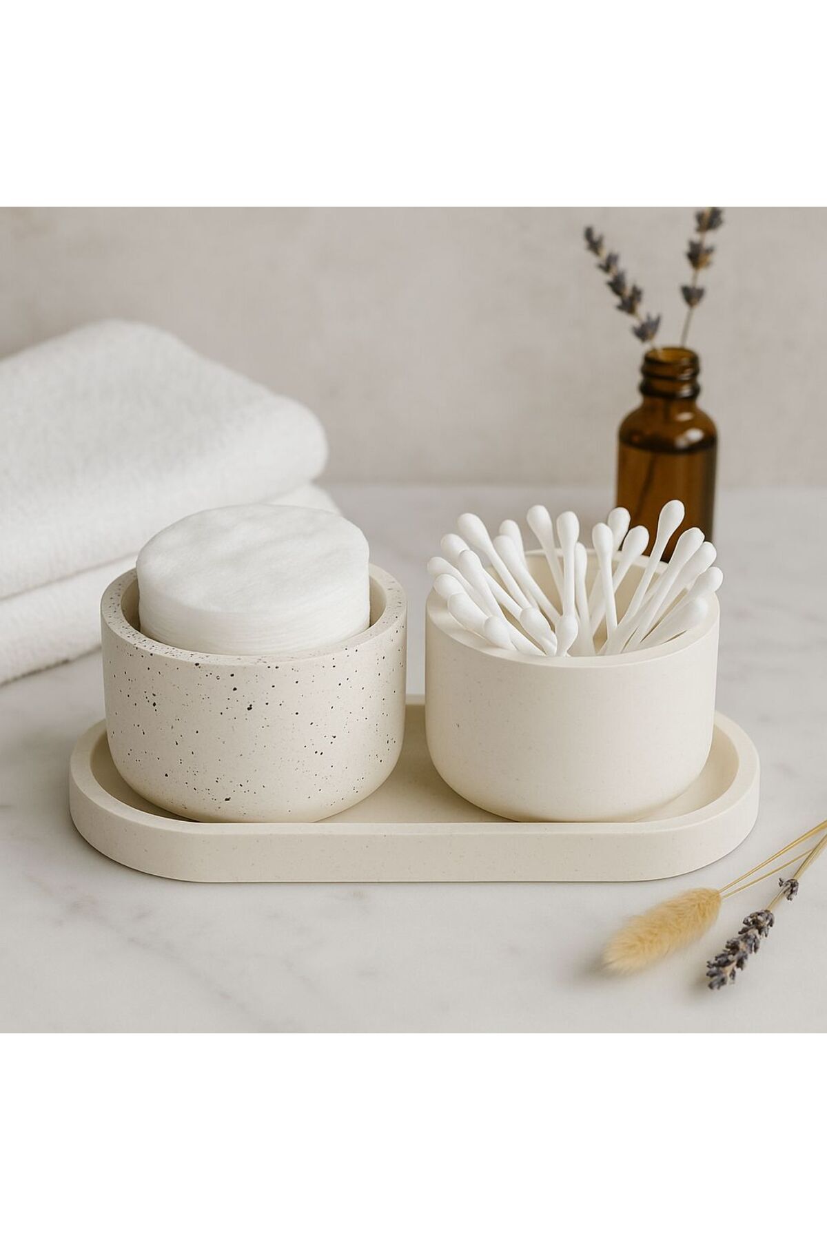 Doğal Dokulu Beton Kapaklı Banyo Kutusu Pamukluk Set Doğal Dokulu Beton Kapaklı Banyo Kutusu Pamukluk Set LY-PMKT-01 تک سایز