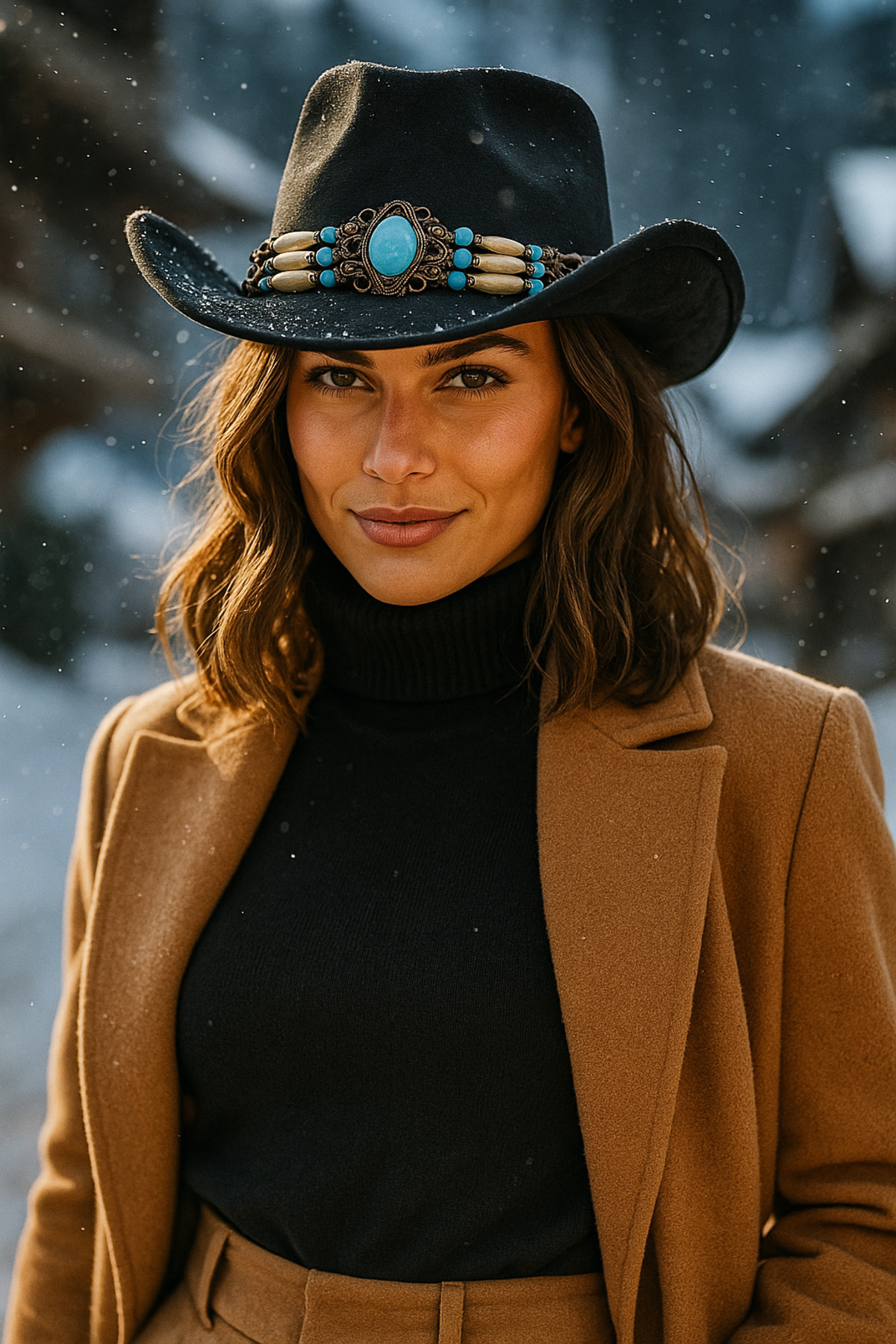 Siyah Süet Kovboy Fötr Şapka – Turkuaz Taşlı Boncuklu Western Model Siyah Süet Kovboy Fötr Şapka – Turkuaz Taşlı Boncuklu Western Model SPK1145 Standart