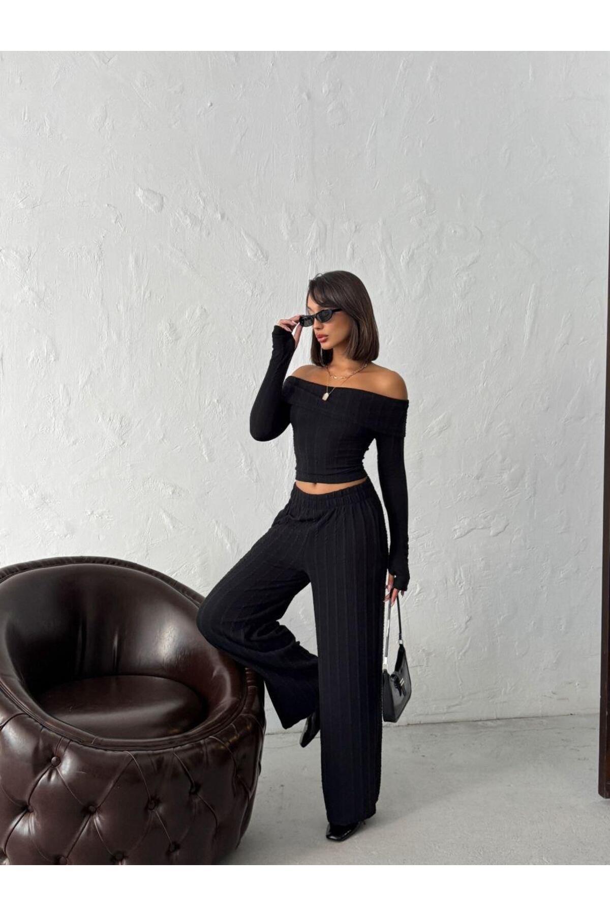 Parmak Geçmeli Kapüşonlu Crop Hırka & Geniş Paça Pantolon Dokulu Takım Parmak Geçmeli Kapüşonlu Crop Hırka & Geniş Paça Pantolon Dokulu Takım 2536 L