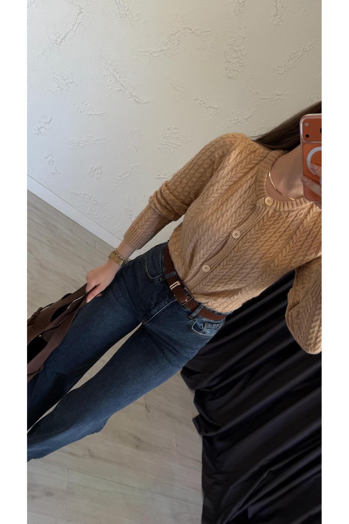 Braida İlmek Doku Triko Hırka Kahverengi Braida İlmek Doku Triko Hırka Kahverengi 7739 L