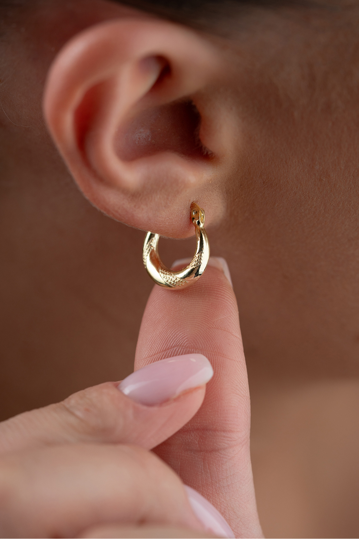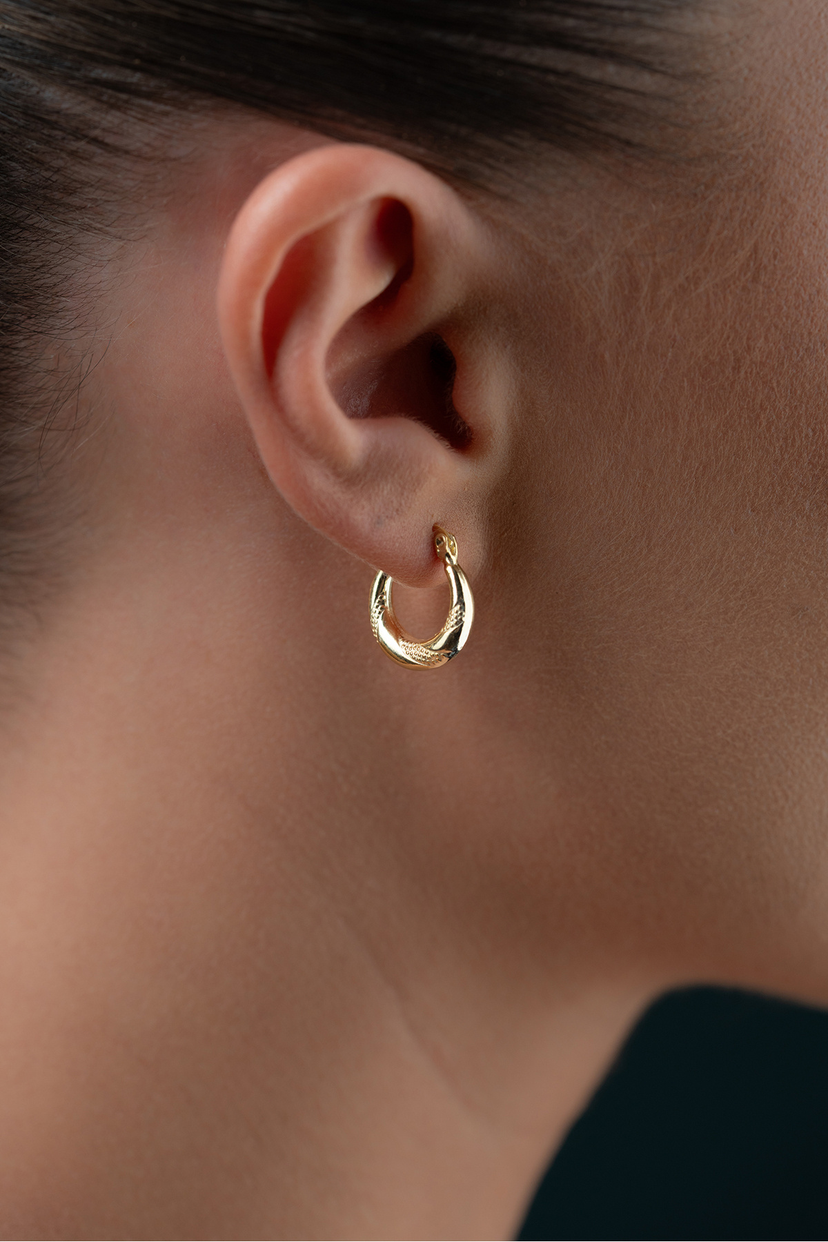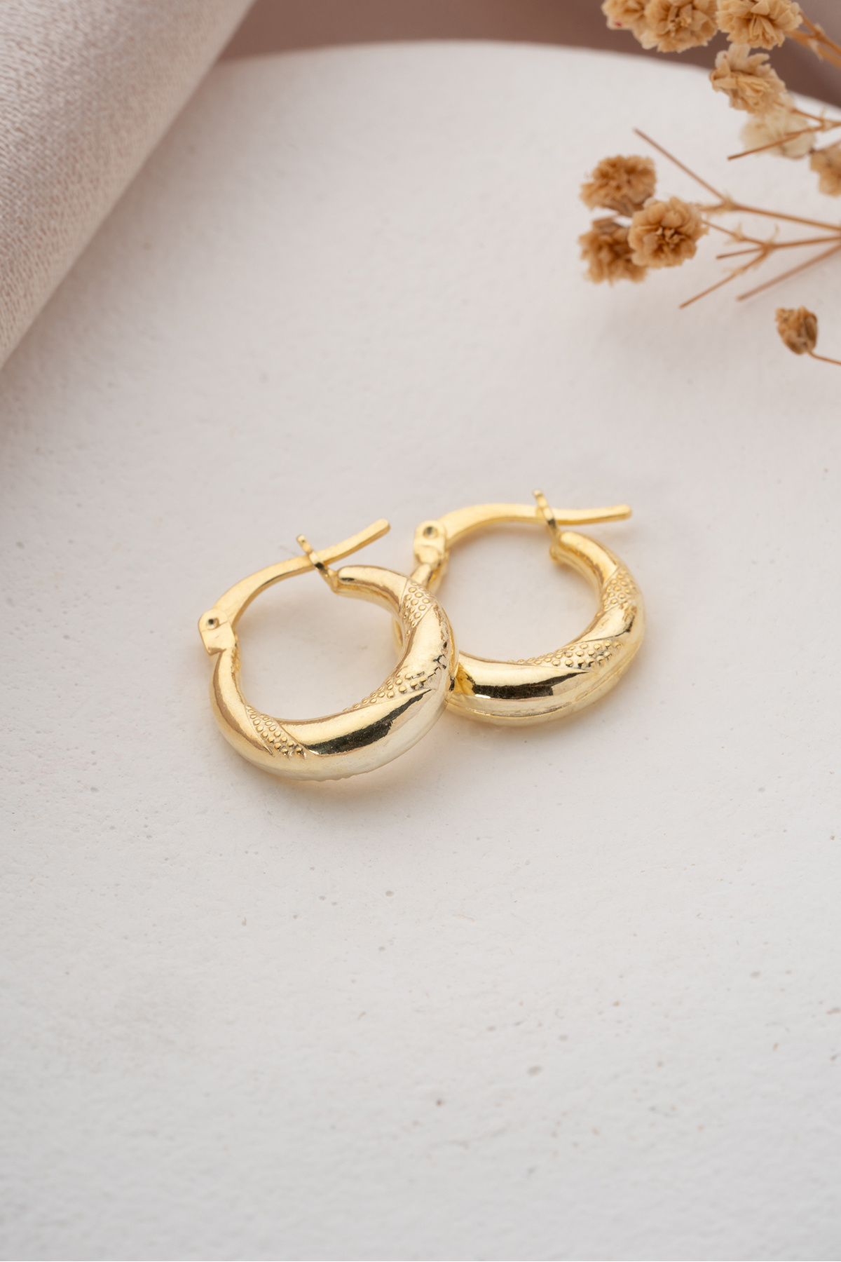 925 Ayar Gümüş Gold Rengi İşlemeli 15 mm Şarnel Küpe 925 Ayar Gümüş Gold Rengi İşlemeli 15 mm Şarnel Küpe ESR999726 تک سایز
