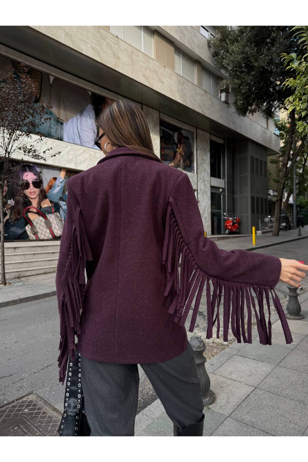 Elora Kolları Püsküllü Kaşe Blazer Ceket Elora Kolları Püsküllü Kaşe Blazer Ceket 9856575 L