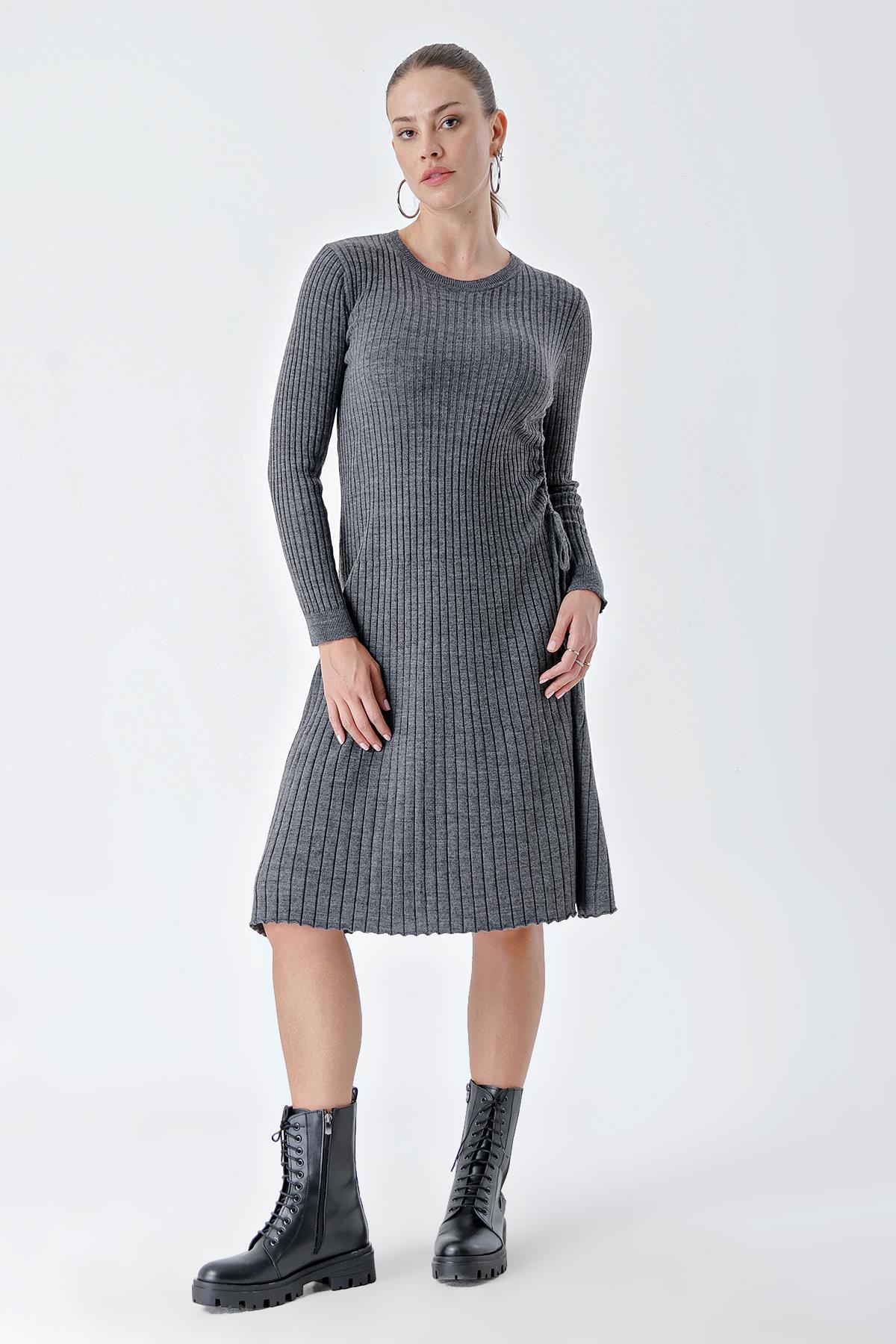 Polo Yakalı Yakası ve Kol Ucu Renk Çizgili Uzun Kollu İnce Fitil Yan Yırtmaçlı Diz Altı Triko Elbise Polo Yakalı Yakası ve Kol Ucu Renk Çizgili Uzun Kollu İnce Fitil Yan Yırtmaçlı Diz Altı Triko Elbise MKBL-2814 Standart