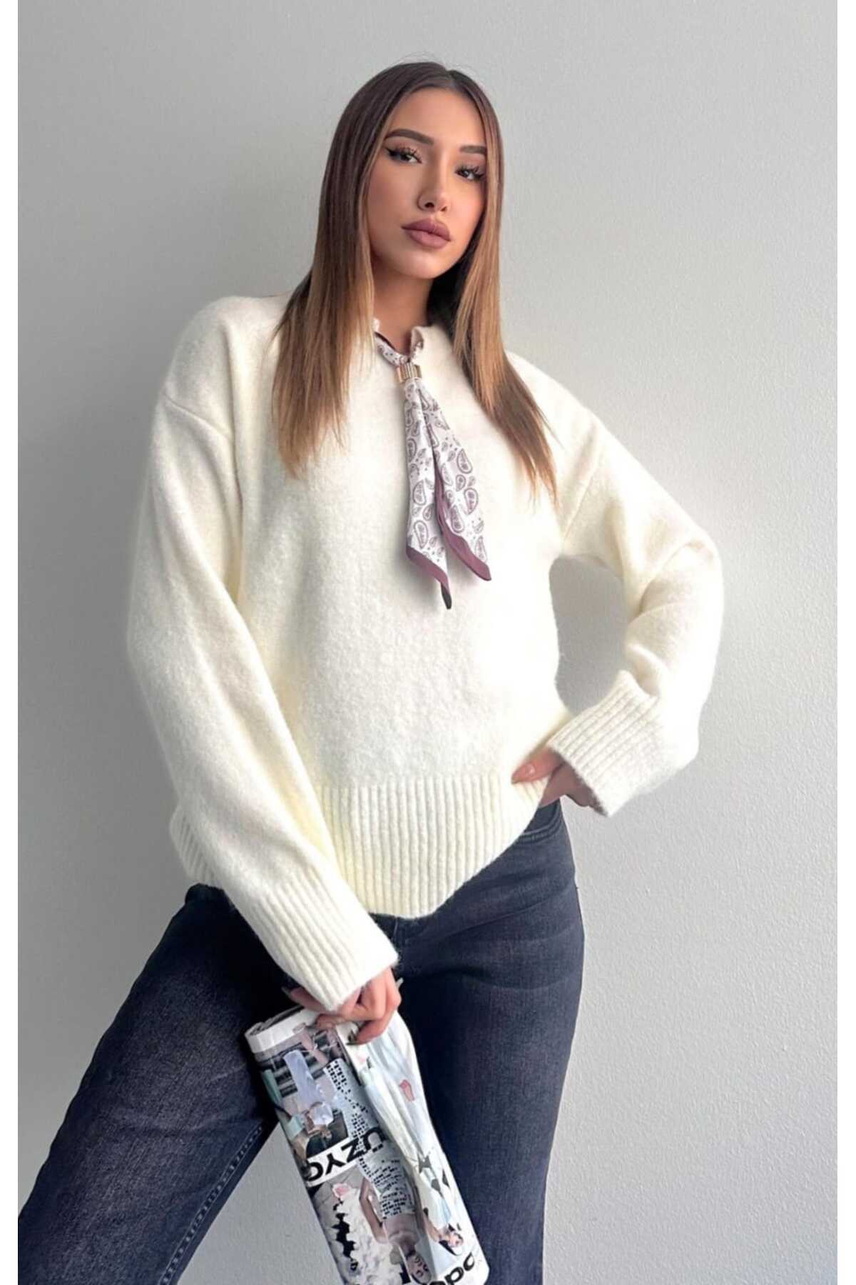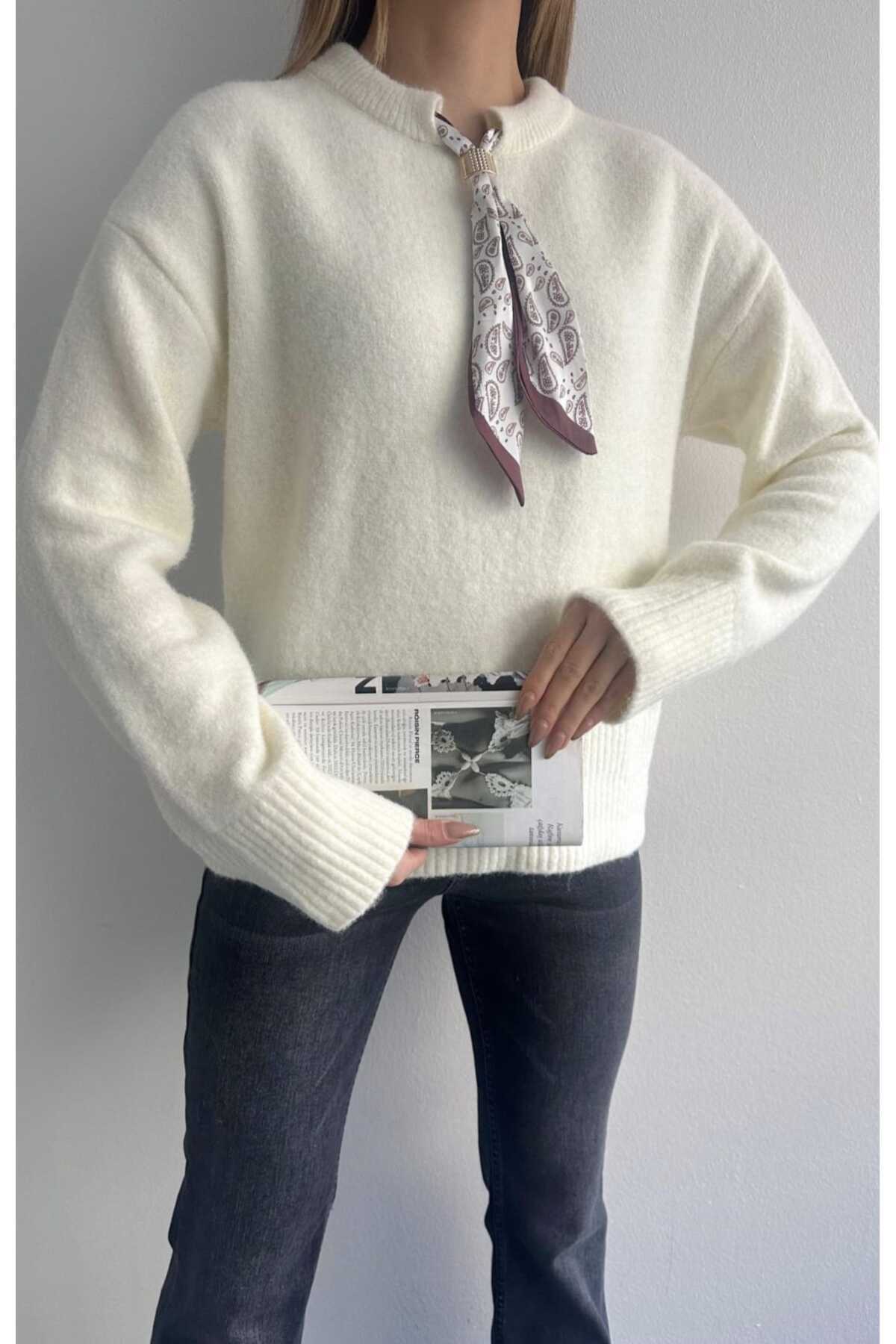 Yumuşak Dokulu Fularlı Triko Kazak Yumuşak Dokulu Fularlı Triko Kazak 25355 Standart