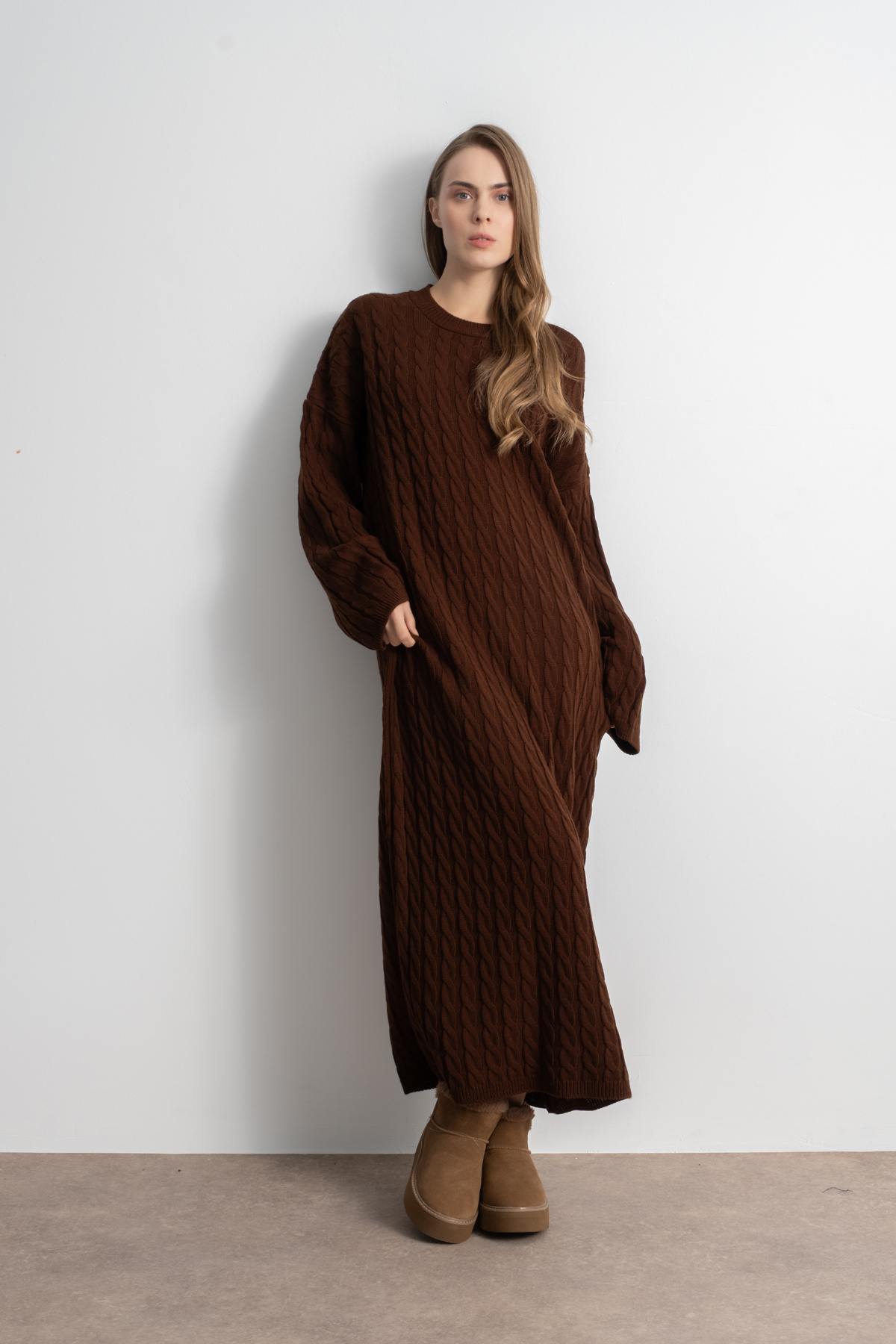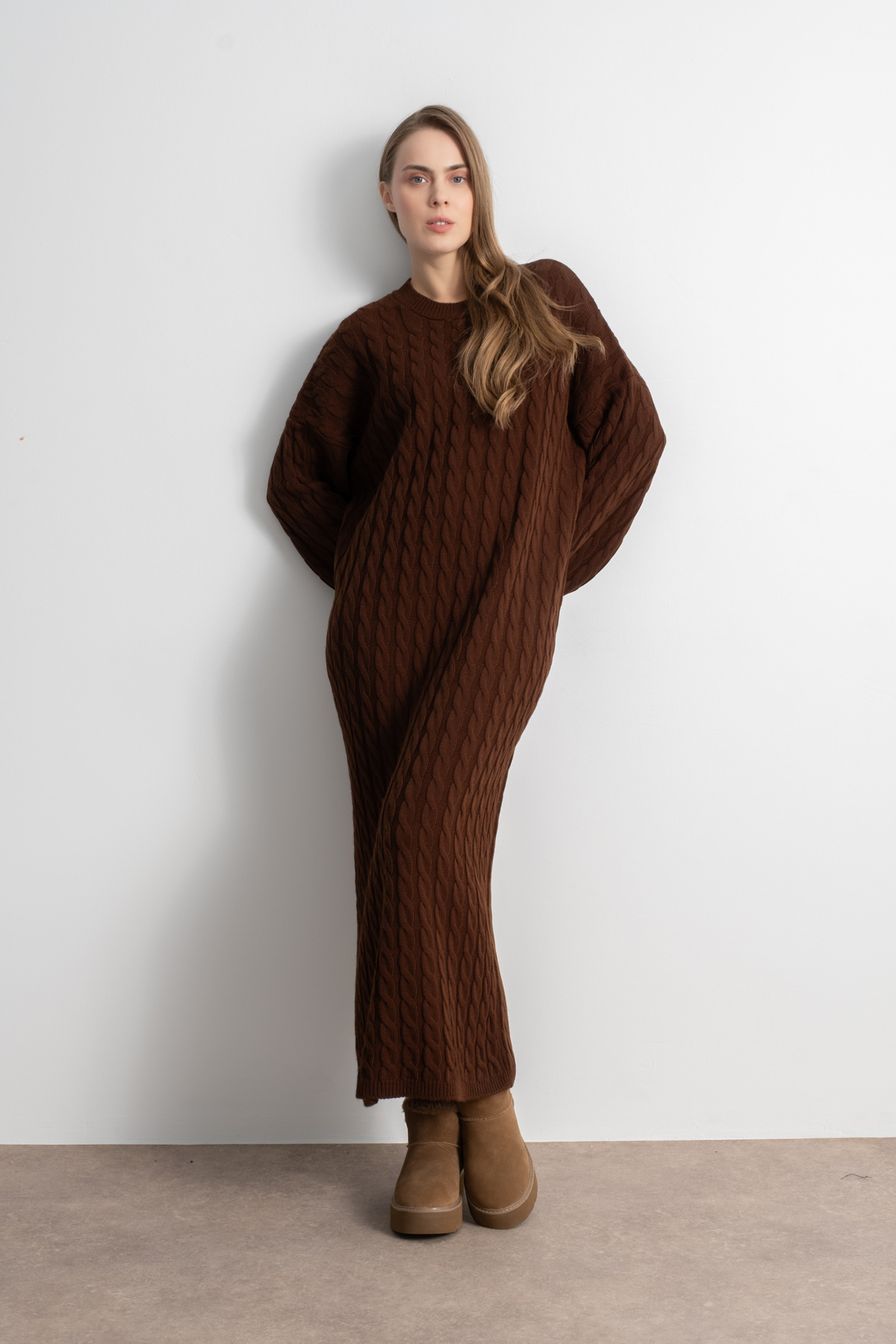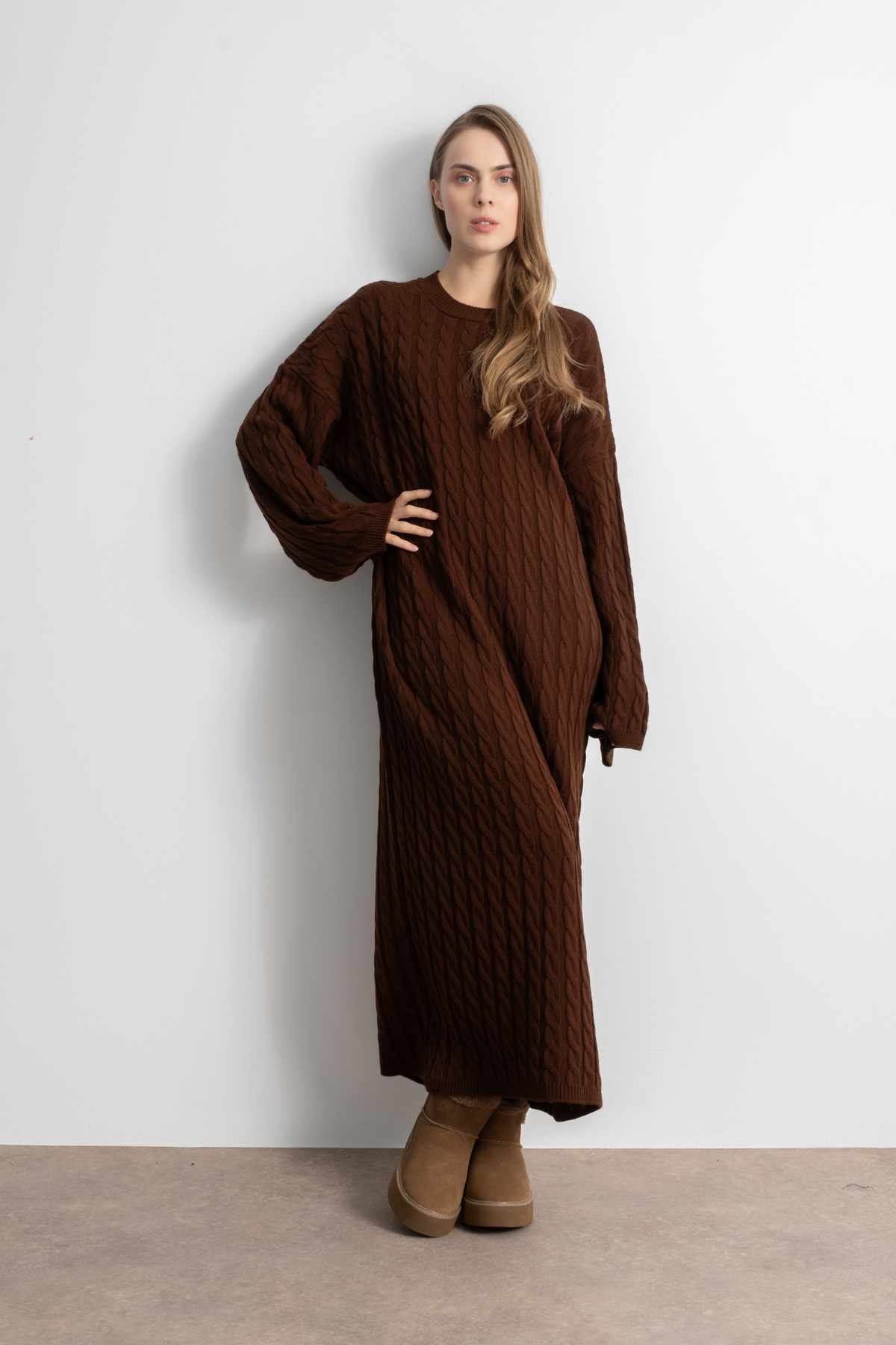 Kadın Triko Saç Örgü Uzun Elbise Kadın Triko Saç Örgü Uzun Elbise MR202548 Standart